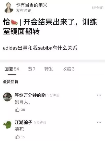 随即,明星解约、电商平台下架相关产品。由这些品牌赞助的节目也被迅速推到了大众跟前。大家都非常好奇,短时间内节目组要如何应对此次危机。特别是近期火热的《青春有你3》(《青你3》),更是成为了饭圈女孩关注的焦点。毕竟节目中,选手人手一件Adidas,简直全员“行走的Adidas人形广告牌”。更要命的是,这边Adidas刚惹发众怒遭抵制,那边按照约定时间,第二天《青你3》就要更新下一期内容了。时间紧任务重,就算剪辑师不眠不休、连夜赶工也不可能剪出来了。《青你3》节目组只好紧急发布公告,宣布正片将延期播出。然而,距离下一次约定的更新时间,又只有3天了!看来,这一次后期团队是要剪辑剪到头秃、打码打到吐血了。不过,很快就有小道消息传来,《青春有你3》开会讨论出来了一个鬼才方案,那就是:镜!面!翻!转!Adidas出事和我sabiba有什么关系?