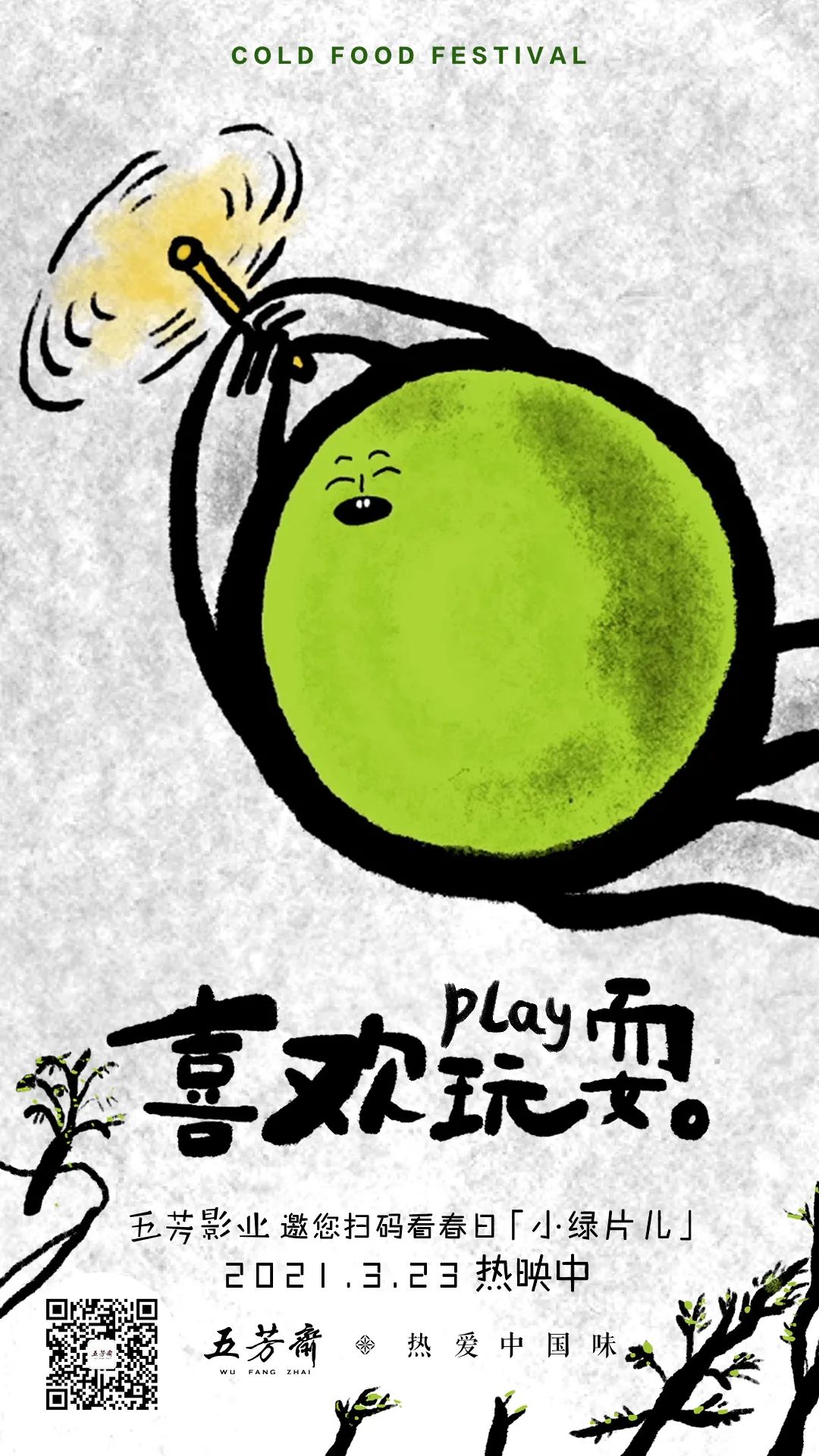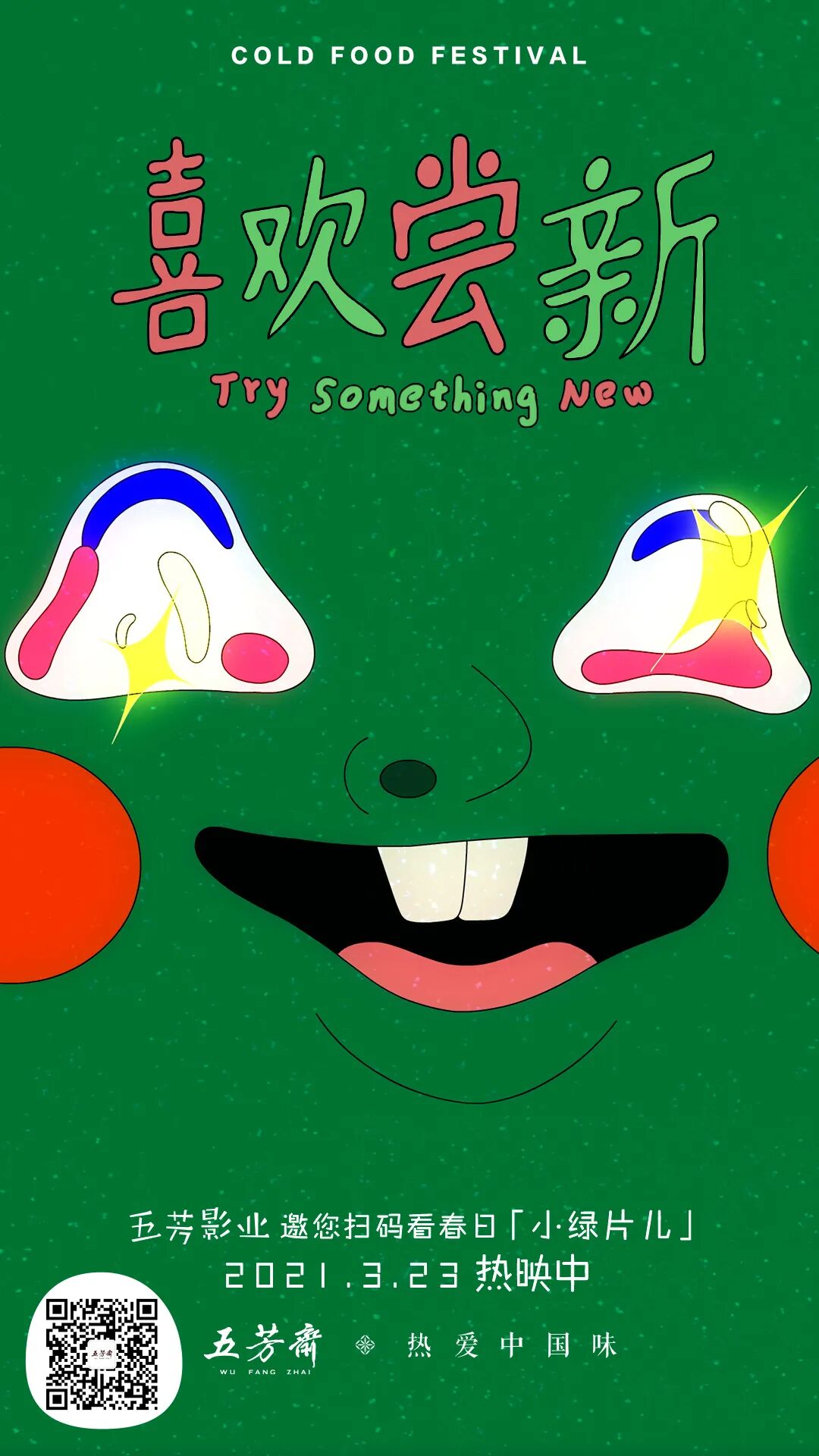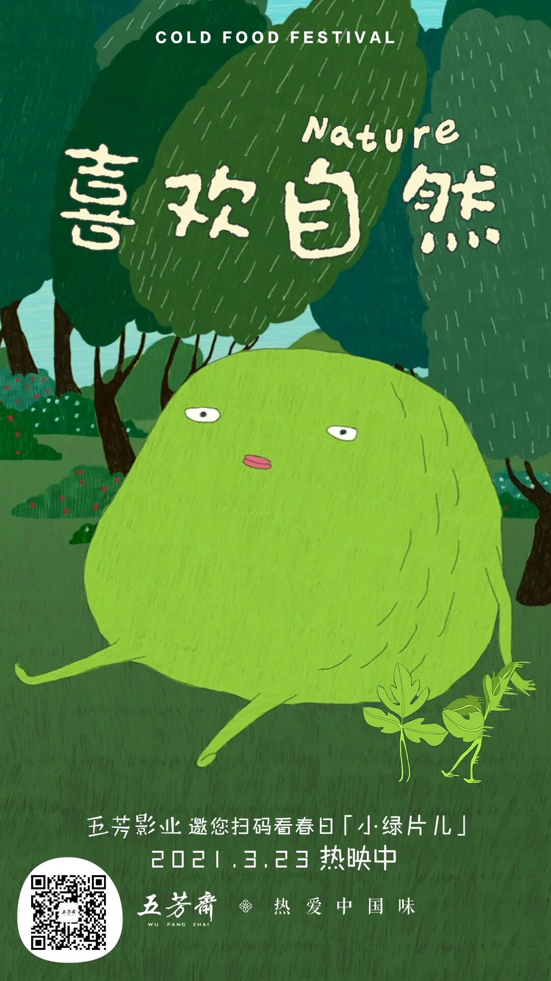 除了短片外,五芳斋还制作了一组同主题预热海报,邀请消费者一起观看五芳影业的“小绿片儿”,感受欢快、盎然的春日气息。