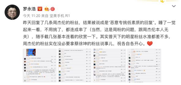 后来周杰伦的粉丝,就冲到罗永浩的微博底下直接开骂。