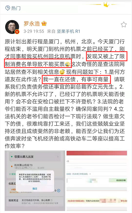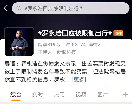 以“怼人”著称的罗永浩,前段时间又双叒叕上热搜了。原来罗永浩在微博上吐槽出差买票时,发现又被上了限制消费名单,顺便以凡尔赛的姿势晒还债,一石激起千层浪,评论区也跟着炸了。