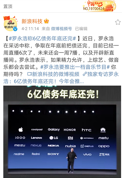 最近老罗迎来直播带货的一岁“生日”,接受采访时还向大家立了一个flag——在年底前把6亿债务还完。今年我给自己目标是想争取在年底前把债还完,这其实压力不小的。