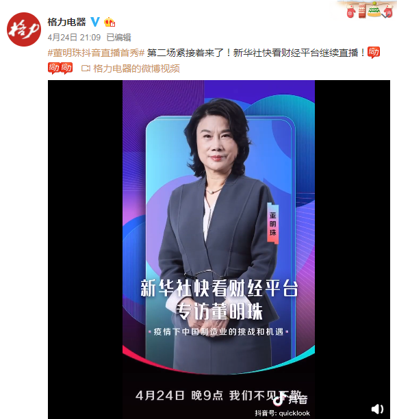 其实早在这场直播之前,董明珠就表示,今年2月格力电器基本没有销售,相比往年损失了近200亿元;三四月份同样不容乐观。疫情凸显了格力的短板。与小米相比,格力是重资产的制造业,小米是轻资产飞在风口上的企业,外部环境发生改变也可以调整、变化,今年疫情对小米就不一定有很大的影响,但是对格力就影响很大。这种实实在在的损失显然让董明珠重新思考了格力与小米的区别,并对线上渠道有了更深入的认知。而急于进入直播电商领域的抖音恰好提供了这样的契机。董明珠参与的“超级BOSS直播日”是抖音发起的直播IP活动,旨在邀请优秀的企业家入驻抖音直播间,通过专属的直播形式和内容定制,为企业家和企业搭建一个创新且优质的“直播+电商”平台生态。但董明珠这场直播背后显然不仅仅是一场直播这么简单。相较于“格力空调”的刻板印象,拓展白电主业品类、深化智能家居产品布局是格力电器未来的多元化业务发展方向。这场直播不仅为格力拓展智能家居应用当了一面活招牌,让全品类家居产品来了一次集体亮相;也让格力的新零售转型浮出水面。作为格力新零售战略的重要一步,“董明珠的店”继发布独立APP、上线微店之后,也借着本次董明珠的直播首秀,正式入驻了抖音。