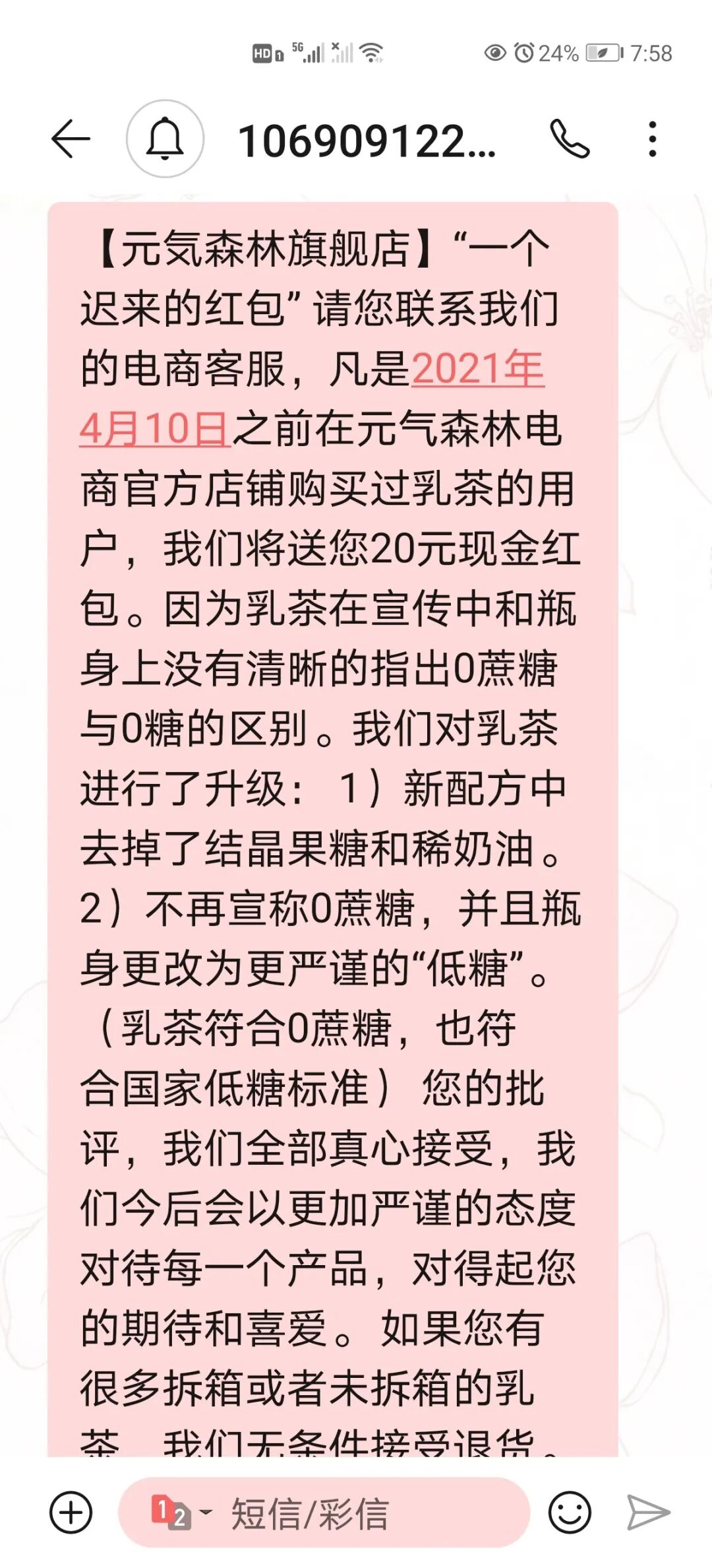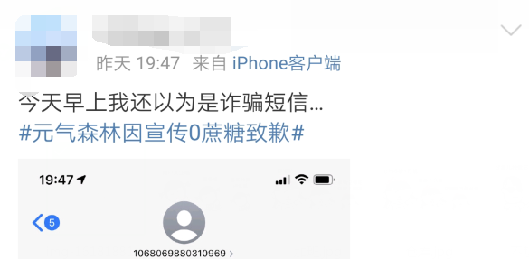 与此同时,不少网友也反馈收到元气森林的“诈骗”短信。