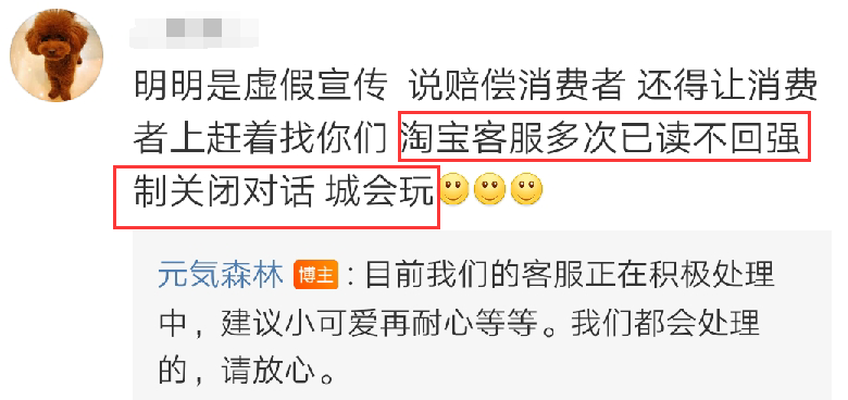 另外,很多网友冲到官方微博留言投诉客服不搭理人,看看这评论区整齐划一的画风。