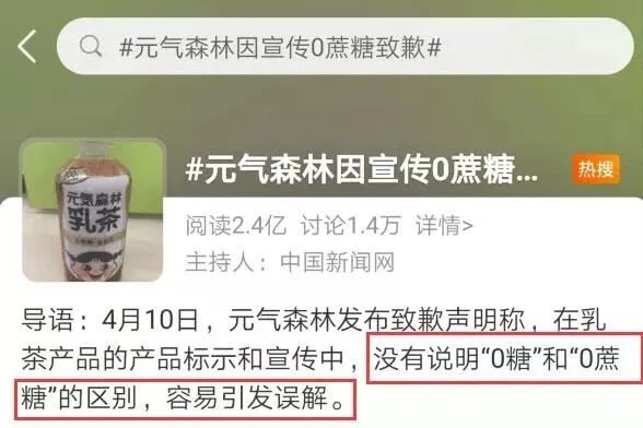 4月10日,元气森林发出了《一次迟来的升级》官方声明,其实就是道歉信,承认自己在宣传中擦边球,让消费者把“0蔗糖”误认为成了“0糖”,包装将从原来的“0蔗糖 低脂肪”升级(纠错)成“低糖 低脂肪”。