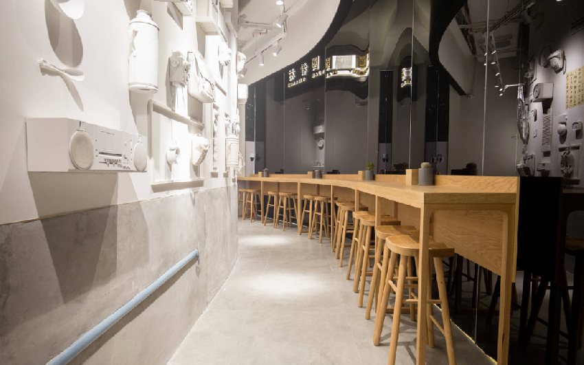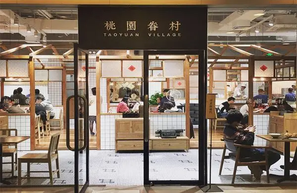 桃园眷村,从名字就知道是一个源自台湾的品牌,包含了当时被迫从大陆迁至台湾的军人及其眷属一种“乡愁。店面设计独具一格,采用写意、木头和复古三大元素,配合黑白黄主打颜色,并加入台湾装饰风格,干净、整洁、自然。