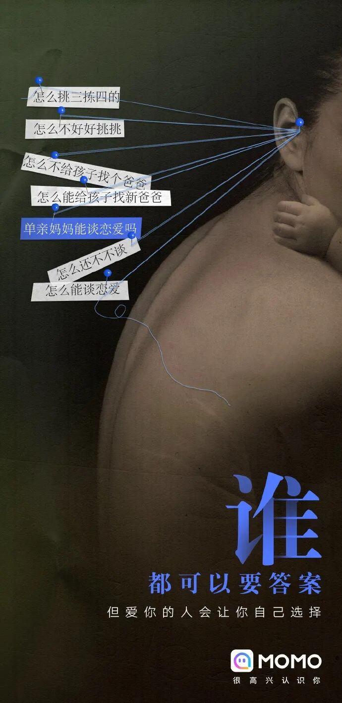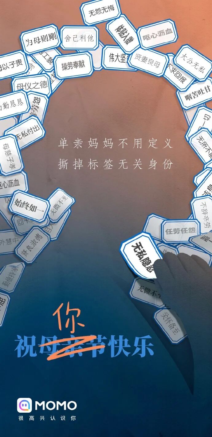 每逢这个节点,都是各大品牌必争之日,一波又一波的品牌借势营销轮番登场,或是温情走心,或是创意脑洞,或是反煽情等等....吹响广告大战的号角。今天,笔者就为大家整理了今年的母亲节借势广告合集,话不多说,一起来欣赏吧~今年的母亲节借势营销战役,多了一位“稀客”的身影。作为一款移动社交应用,陌陌似乎和母亲节关联不大,但陌陌却交上了一份优秀的答卷,令人刮目相看。在母亲节来临之际,陌陌大胆地发出了一个提问《单身妈妈能谈恋爱吗?》,就着这个问题引出了当下社会外界强加给单身妈妈群体的非议和桎梏,鼓励单身妈妈们无惧流言,活出自我,勇敢追求爱情。与此同时,陌陌还发布了一组极具视觉冲击的借势海报,将单身妈妈所背负的舆论枷锁用绳索和绑带的形式呈现出来,呼吁大家关心单身妈妈的育儿压力和社交环境,传达出陌陌对单身妈妈用户的品牌关怀。陌陌以打破偏见为立意点,从单身妈妈的社交困境层面建立起和母亲节的关联点,再次突显了陌陌的社交产品优势,不失为一次成功的母亲节借势尝试。从2018年开始,宝洁就围绕「爱在日常 才不寻常」主题,开展母亲节借势营销。今年宝洁依然在延续这个主题的前提下,继续讲好关于母亲节的故事。宝洁举办了一座“妈妈学院”,由杨迪妈妈担任指导老师,传授育儿心得。视频里,一位准妈妈在人生角色转换之际产生了严重的心理焦虑,为了帮助这位准妈妈走出困境,老师展现了当下妈妈们的快乐育儿生活图鉴,最终让她卸下了心结。母爱没有标准范式,妈妈快乐了,宝宝才能快乐。宝洁精准洞察新手妈妈的心理活动,并给出了答案,这一举动治愈又暖心。不过相比前年爸妈互换角色的《母亲节的愿望》,和去年《妈妈的工资》而言,今年这支母亲节广告还是显得有点黯然失色。母婴品牌Babycare的母亲节案例,个人认为是今年最好哭的广告。Babycare分别从母亲和孩子的不同视角,向我们讲述了一份双向奔赴的爱。短片记录了孩子的成长点滴,从呱呱坠地到蹒跚学步,每一步成长的足迹都印在母亲的心里。世界上最美好的事情,是爱有回应。母亲和孩子互吐心声,完成了一场心灵上的对话。不得不说,Babycare的创意很走心。曾经在母亲节扬言要《妈妈再打我一次》的野兽派,今年不再搞怪,推出了一部浪漫的母亲节微电影《每个妈妈都喜欢花》,邀请到“咱妈”张小斐和众多明星妈妈出演。剧情的灵感源自于野兽派真实的订花故事,主要讲述了花艺师为气质不同的妈妈推荐花束,记录妈妈收到花时的幸福心情,侧面凸显了野兽派的贴心服务。以花传递爱意是最常见的过节方式,但是你的花送对了吗?今年的母亲节,方太《妈妈的时间机器》系列迎来了第五季,不同于以往的温情走心,今年方太拍摄了一部厨房版《爱乐之城》。在欢乐的载歌载舞中,唱出了妈妈被繁重的家务占据生活的困扰,顺理成章地带出了方太的新品高能气泡洗,以此解放妈妈的双手,实现妈妈梦中畅想的美好生活。从母亲节营销风格的转变,同时也看出今年方太加大了对产品力的打造力度。在母亲节推出新品,乘节日借势之风为新品推广,也算是实现了一箭双雕。都说美食最能疗愈人心,但美食制作的过程却并不快乐。尤其是炎炎夏日厨房里的高温,让人不堪忍受。美的洞察到这一痛点,在母亲节推出了一支微电影,将温情故事和产品卖点完美结合起来,呼吁大众关注妈妈们的厨房环境。微电影采用了倒叙的形式,在经济拮据、科技落后的八十年代,一位妈妈为了帮助孩子降温消暑,不辞劳苦搬运冰,为孩子做冰镇绿豆汤,成为孩子心中的冰雪女王。时间回到了现代,孩子用美的空调,为妈妈也送上了一份冰雪魔法,为热气腾腾的母爱带去一丝凉爽。今年母亲节,新东方在线提出了一个角度清奇的问题,假如妈妈是一门学科,多久才能结课毕业?初为人母,新手妈妈手忙脚乱,需要学习育儿知识;孩子步入青春期,妈妈要学习如何与叛逆和解;孩子组建新的家庭,妈妈要学习放手;直到孩子有了自己的孩子,妈妈又要重拾当年的育儿知识点......孩子的年龄,就是妈妈的学龄。虽然艰辛,但是妈妈从未想过毕业。