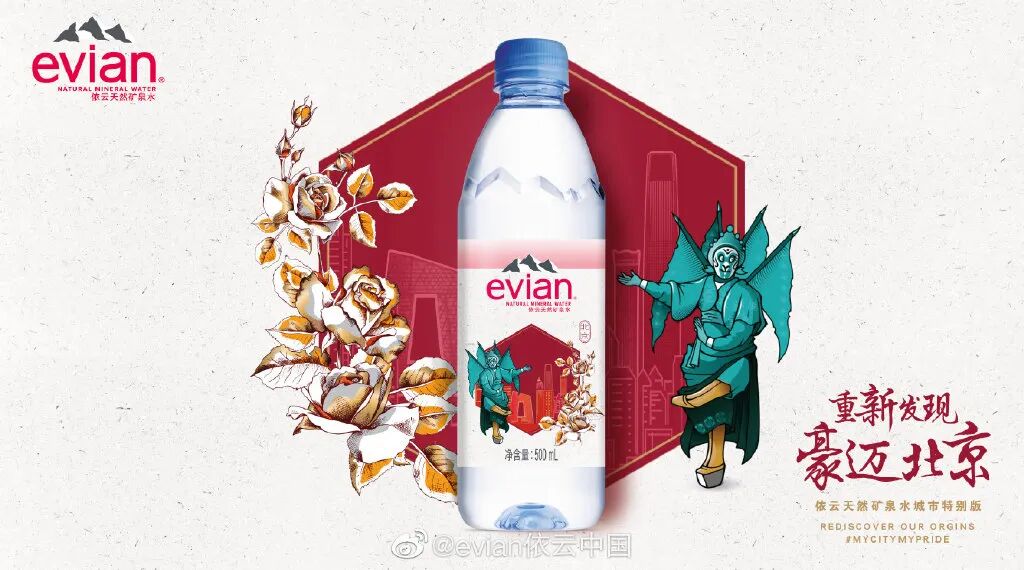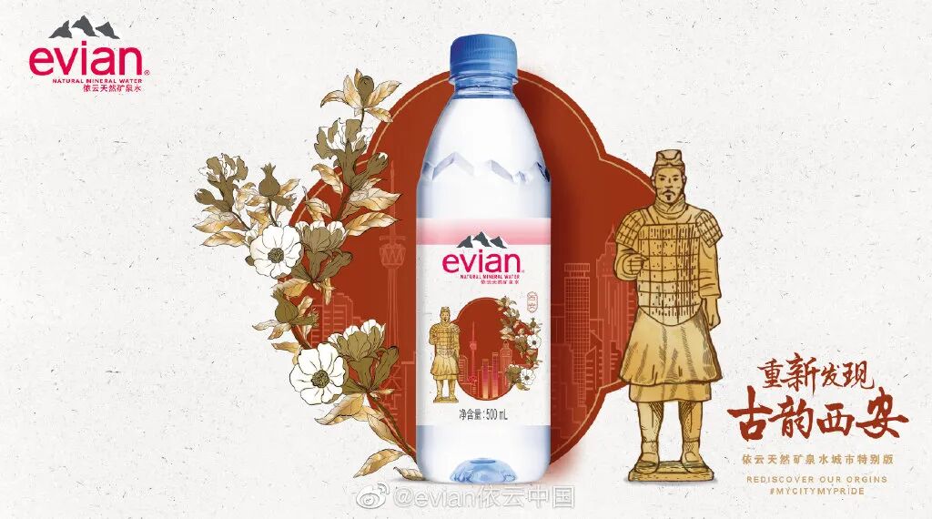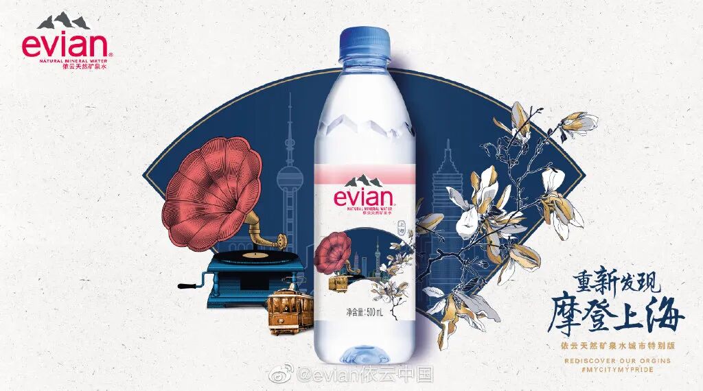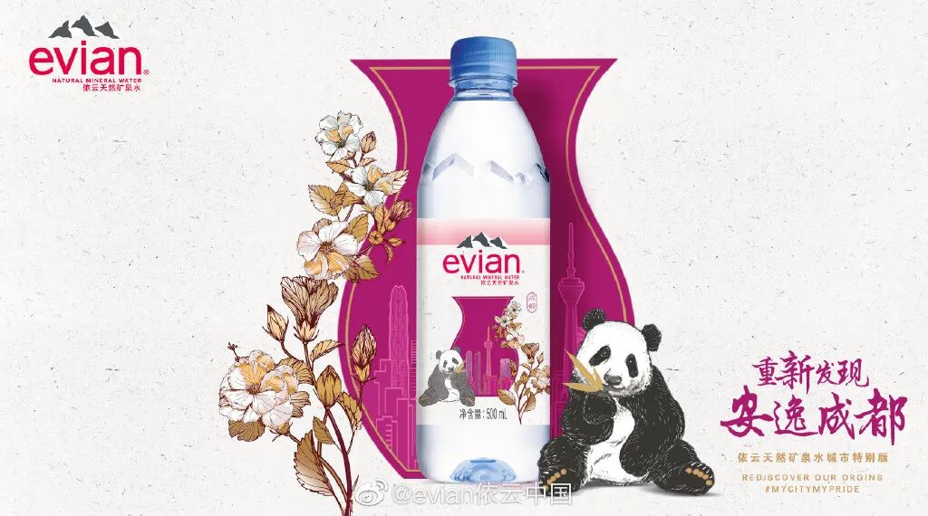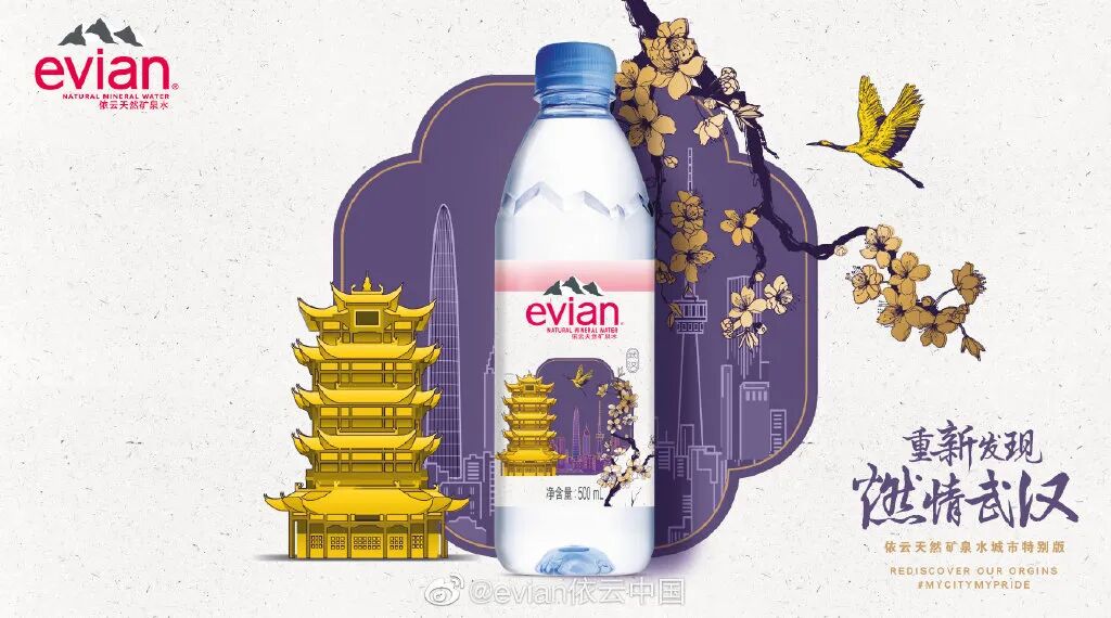 无独有偶,不久前依云挖掘不同城市的文化本源,打造了北京、上海、广州、成都、武汉、西安六款中国城市特别版包装,运用了熟悉的武汉黄鹤楼、四川大熊猫、上海古老的留声机等元素。