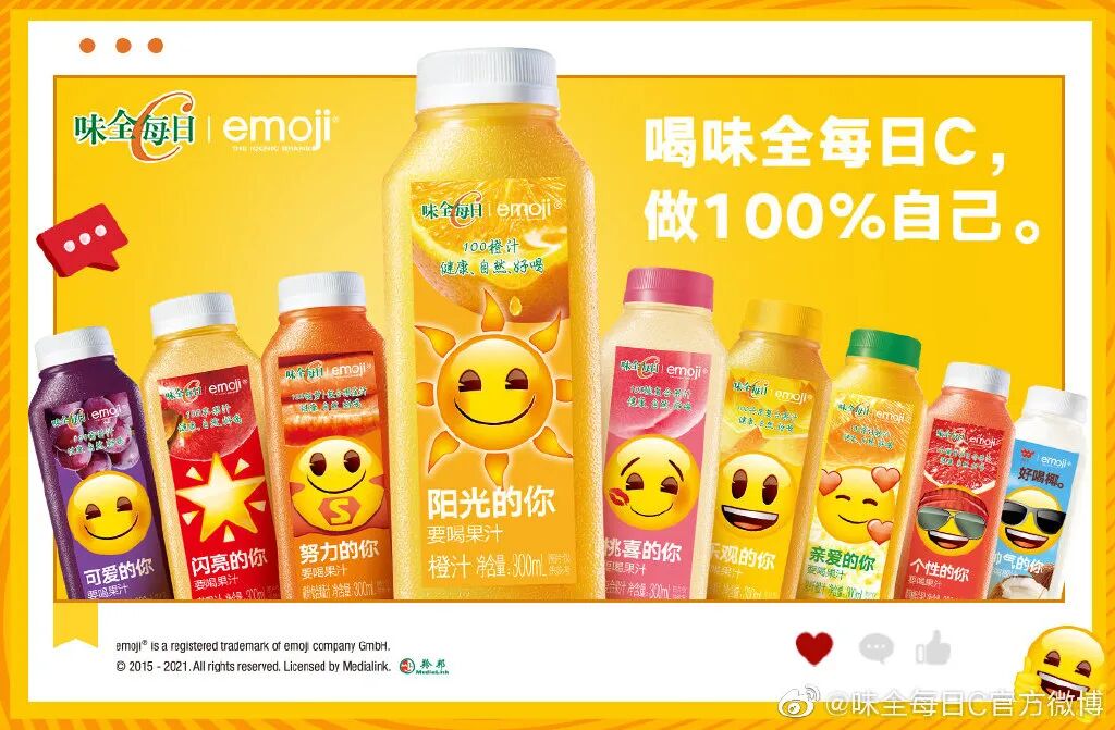 前几天去便利店,发现包装高手味全每日C又悄咪咪地换包装了,这一次直接把emoji表情包贴在瓶子上,果然又没让我失望!