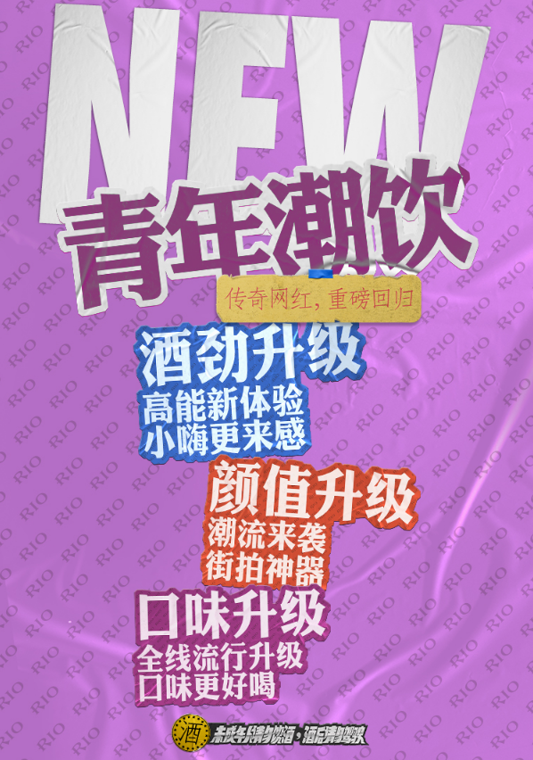 面对年轻人,品牌除了一味地迎合潮流,更需要去引领潮流。产品的迭代升级能力是每个品牌业绩长虹的核心竞争力。比如在RIO在七周年的时候将产品焕新,越潮越年轻。包装设计上,简约风搭配变幻般撞色元素的“RIO”,用叠色创意表达多口味产品碰撞的创新感觉更富有新意,也更具年轻时尚和动感。不论是将其置于超市或是酒会、酒桌上,都比其他酒水更能吸引关注。在口味上就推出了蓝玫瑰威士忌、水蜜桃白兰地、青柠青瓜朗姆酒、宾治马尔斯绿伏特加等6种混搭口味,为年轻人提供更多尝新的体验。随着时间的推移,消费者的需求会不断发生改变。酒的颜值和口感的升级,甚至是推出新品类的产品,都是在不断挖掘消费者的新需求。在此过程中,品牌一旦做到比顾客更懂顾客自己,抓住消费者的痛点,那推出的产品定能引领一次新的消费升级,帮助品牌打开新的市场获取更多客户。同是去年,RIO微醺系列从将产品定位于“一个人的小酒”,强调“独饮”消费场景,依靠差异化的错位抢占“独饮场景”这个细分市场的空白。通过针对当代年轻人工作忙碌、生活压力大的群体状况,RIO微醺为年轻人营造出独饮时情绪和场景,让RIO成为年轻人情绪释放和自我取悦的载体,唤起他们内心对美好生活的一种期望。不仅是独饮的消费场景,RIO还推出过配餐酒RIO STRONG,在试点时便取得了超出预期的效果。RIO通过强调产品的“日常感”来拓展消费场景,不仅仅是RIO差异化的错位竞争策略,更是品牌通过场景构建产生的剧场效应,让用户增加一种沉浸式体验,最终被不知不觉地植入一种仪式感,在消费者对品牌产生情感共鸣的同时,也产生较强的归属感。世界品牌专家戴维·阿克曾说过,揭示品牌增长的唯一途径(几乎无甚例外),就是要打造出顾客脑海中新的“必需品”,以此定义新的细分品类,并构建具有竞争壁垒的标杆品牌。由此再回看年轻人酒水消费的四个特点品类的迭代升级多元细分、新潮尝新、香甜果味和健康微醺。在产品升级这一块,无论是RIO的产品升级或微醺发力,还是江小白的果立方出世或梅见新品牌的独立,还有精酿市场中一堆新品的横空出世,都是所有品牌们企图通过产品创新去抓住新的细分市场。只有在新品类中占据最高点,才能真正的打开市场,实现盈利。