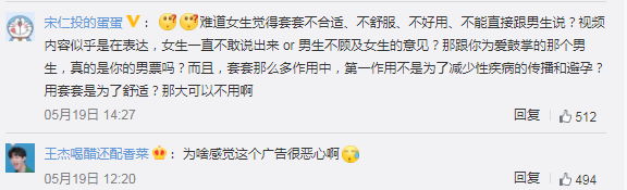 正如一位网友所说:“难道女生觉得套套不合适、不舒服、不好用、不能直接跟男生说?视频内容似乎是在表达,女生一直不敢说出来 or 男生不顾及女生的意见?”这里确实存在着逻辑上的矛盾点,为了表现女生的勇敢发声而发声,舆论的反噬自然不为过。