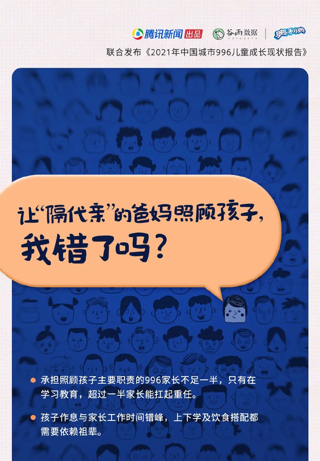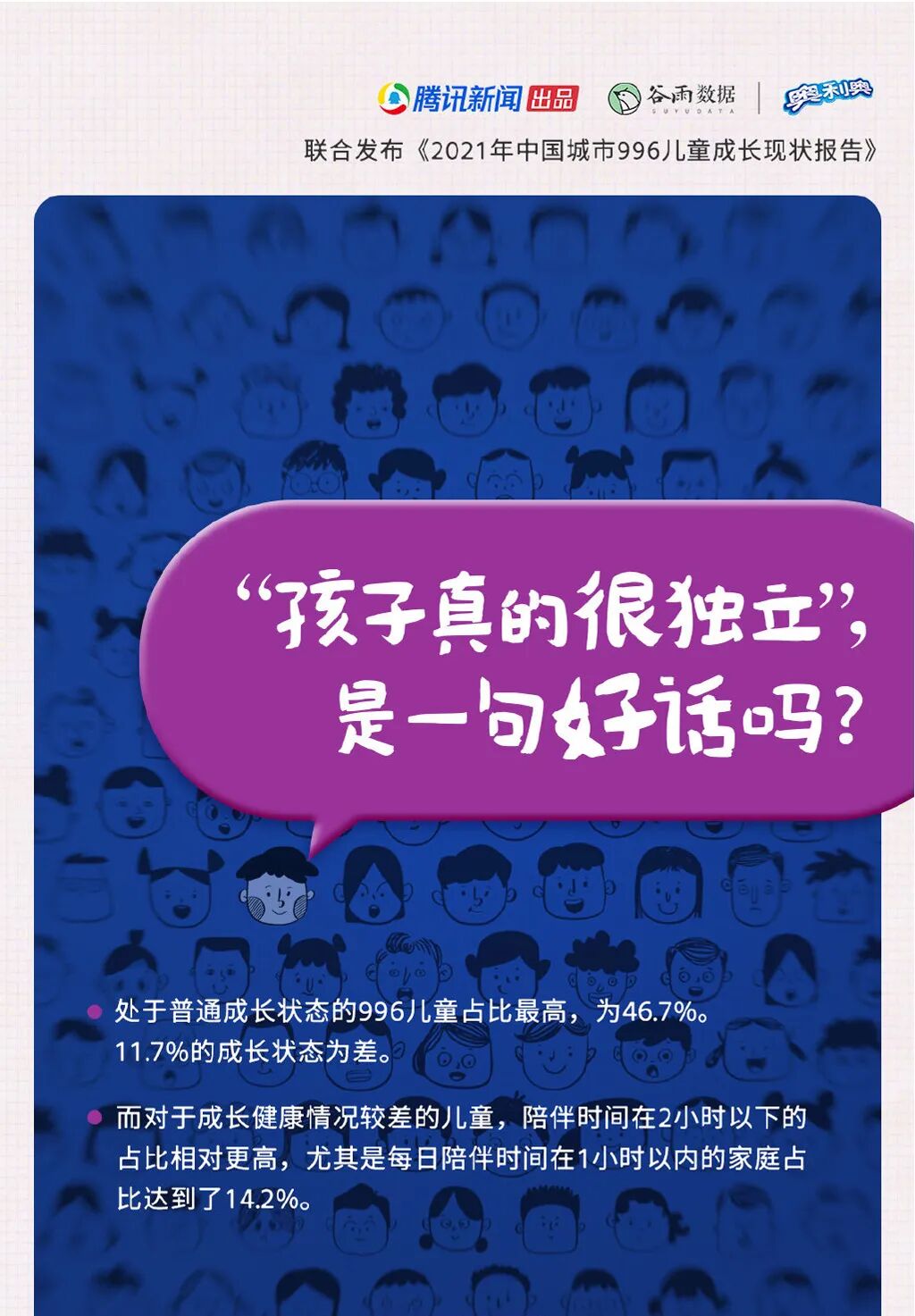 一方面,奥利奥是一个暖心的号召者,呼吁父母多陪伴孩子。另一方面,奥利奥还是一个陪伴的连接者,它就像一枚纽带,拉近了996父母和996儿童的亲子关系,让父母和孩子玩在一起,让爱不缺席。如果还要再去探究,奥利奥为什么要做这么一件事情,我想一个很重要的原因在于: 透过奥利奥x腾讯新闻研究发布的《中国城市996儿童成长现状白皮书》,我们窥见一个很现实的问题:高达85%的6-12岁城市儿童正成为“城市996儿童”,可见父母和孩子,即使生活在同一座城市同一屋檐下,孩子依然面临陪伴缺失问题。这其中,成长健康良好的城市996儿童的每日亲子陪伴时间平均为3小时,4小时以上的陪伴达到了近24%;相反,成长健康较差的,每日亲子陪伴时间平均为2.3小时,其中14%的家庭在1小时以内。这一串数据的背后,无疑折射出一个既普遍又隐性的现实问题——为了提升家庭的生活水平,父母不可避免要承受996工作,随之而来的就是,难以兼顾工作和陪娃日常。但对于孩子而言,可能造成身心伤害。也是这样的原因,正值儿童节,奥利奥选择更权威的公益机构,发起这场儿童节的特别行动,呼吁更多996父母回到孩子身边,期望引起他们对于孩子陪伴需求的重视,帮助城市996儿童身心健康成长。就像我们经常说的,陪伴是最长情的告白,也是最好的礼物。
