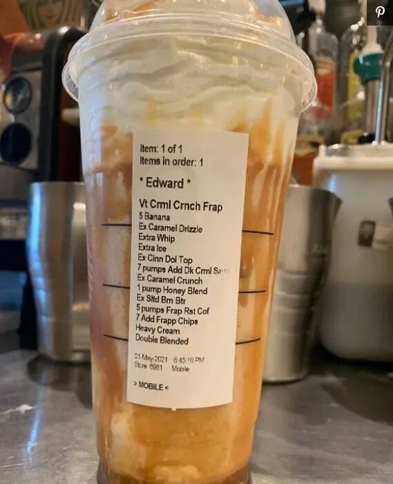 这一款“大理石美式”同样是榜上无名,解锁密令就是“冰美式、浓缩咖啡、焦糖糖浆、奶油”。据说星巴克的隐藏菜单主要就是分为两类,好喝和好看,前者靠口味制胜,后者凭颜值出圈。在加州的一家星巴克,曾有一名叫Edward的顾客,点了一杯Venti Caramel Ribbon Crunch Frappuccino ,后面附带超长串的加料:5根香蕉,七泵焦糖酱,多加鲜奶油、多一点冰、多一份肉桂糖浆......多达13种。 据说当时星巴克一个员工都被逼疯了,还在推特上po图配文“遇到这样的订单我真的很想辞职”。且不去讨论是不是星巴克的一次营销,但有话题度成为不争的事实。这条推特瞬间收获5万多条评论,以及30多万的点赞。不过话说回来,星巴克之所以推出这一份“无法拒绝”的菜单,也是由背后的企业文化决定的。星巴克有这么一个说法,帮助顾客找到并制作合适饮料的专业,这是星巴克体验的核心。因此顾客在星巴克消费,拥有对饮料提出客制化的权利,而无论顾客点什么,店员都要有求必应,不能说做不到。就像茶颜悦色的“雨天指定饮品第二杯半价”,还有在茶颜悦色点纯茶,只要杯子在手,就可以在茶颜任何一家门店无限续杯;除此之外,茶颜悦色还藏着这么一项服务——一杯永久求偿权。消费者如果不喜欢,就可以无条件再要求重做一杯,直到满意为止。所以,在某种程度上来说,隐藏菜单之于星巴克、茶颜悦色而言,初衷更像是给大家提供服务的附加价值,是用户至上驱动下的体验创新。03