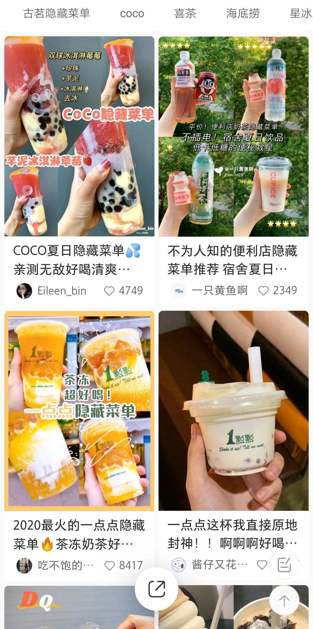 说起来好像很神秘。简单来说,就是“看不见的菜单”,就是指门店不公开售卖的美食或者菜品,消费者通过对原材料自主搭配DIY,打造自己专属的饮品。只要在小红书或者微博随便一搜“一点点隐藏菜单”、“星巴克隐藏菜单”、“海底捞隐藏菜单”,就会弹出满屏的奶茶/咖啡超全攻略,每一款看起来有颜、有料,还亲民。