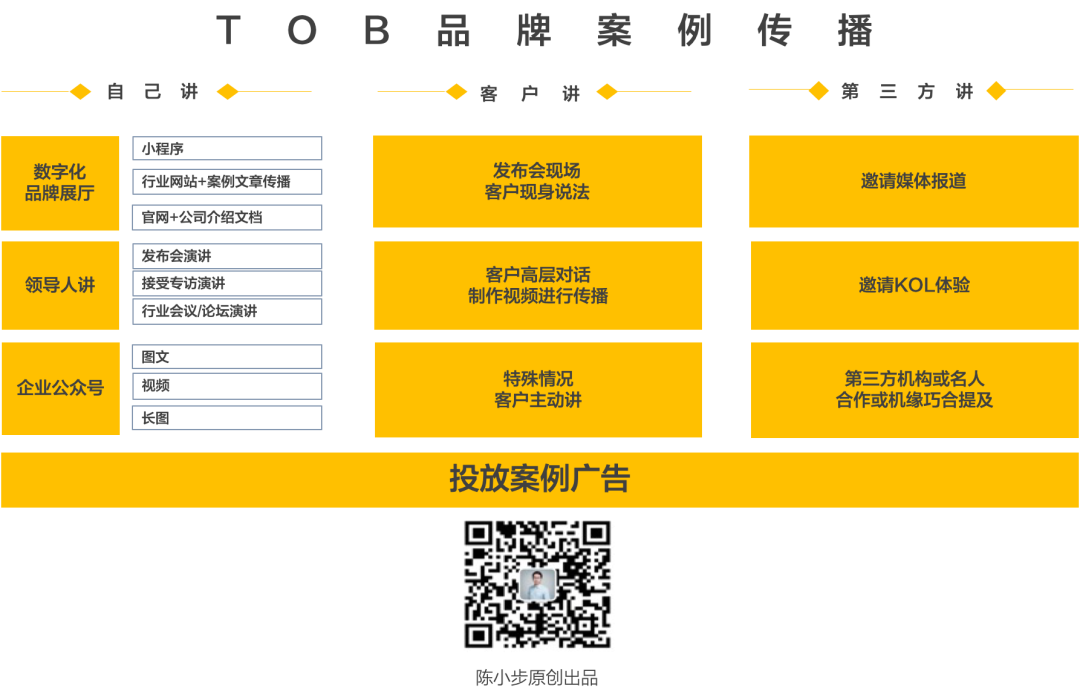 上一篇文章《TOB品牌传播九式一厅》,简要介绍了ToB传播常见的一些方法,后面陆续收到一些ToB朋友关注和聊天,包括在给客户服务的过程中,很多都问到案例传播的问题。
