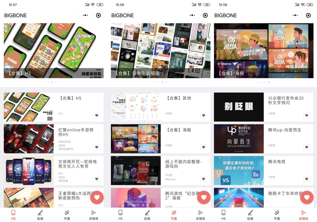 下面的截图,是一家腾讯经常合作的H5创意公司的案例合集小程序,和新客户沟通的过程中,发出这个小程序,在手机上阅览非常舒适,效果远好于官网和PPT。