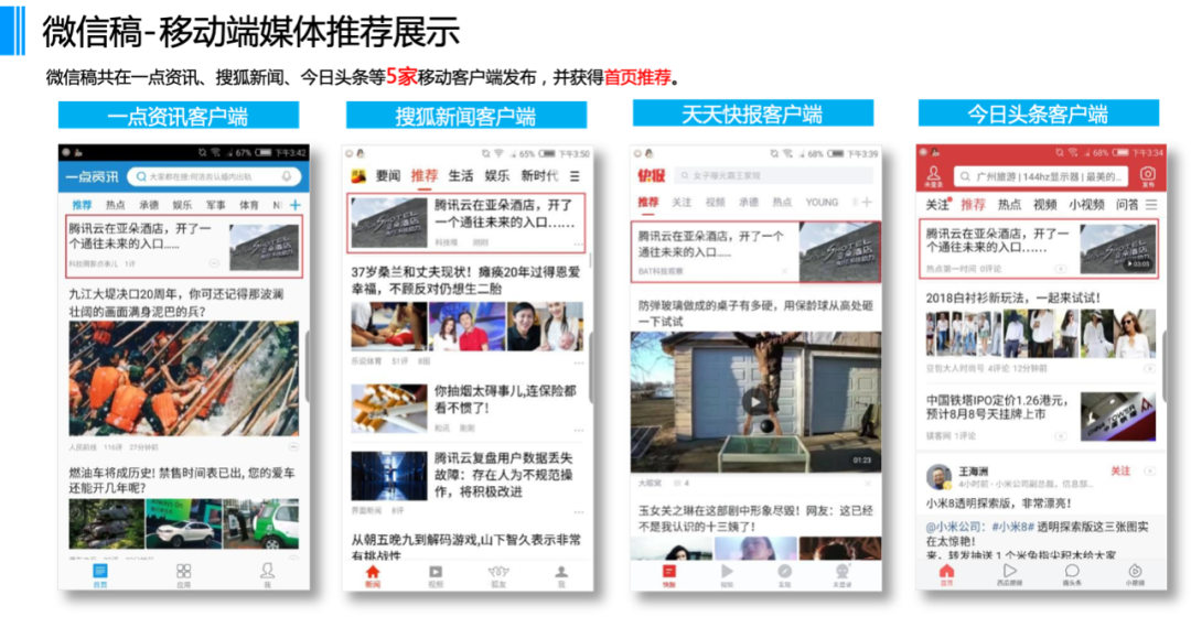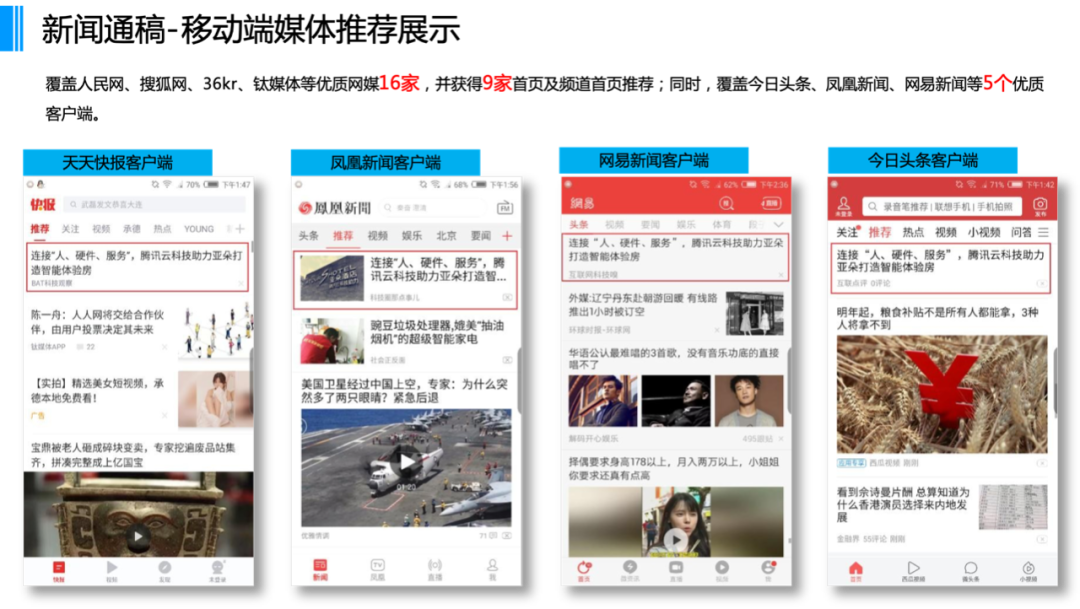 人民网、36氪、钛媒体、infoQ、腾讯新闻推荐等,新闻稿件+权威媒体+移动端主流媒体,稿件获得媒体关注和推荐阅读。