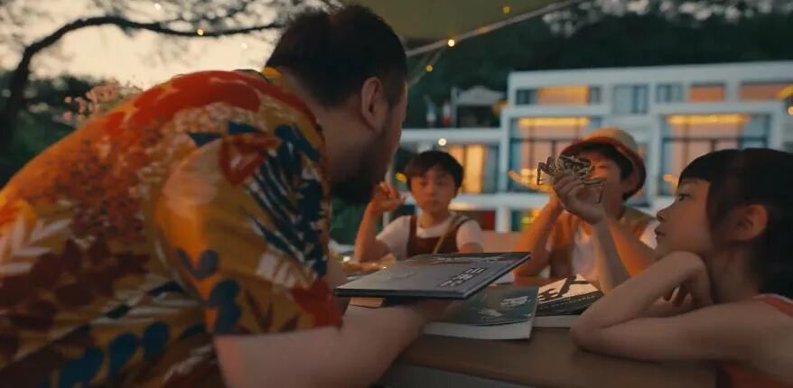 随着剧情推进,然后画面又从水墨风格切换到彩色风格的现实世界,原来刚刚看到的景象,是一个成年男子给孩子们讲述的故事。