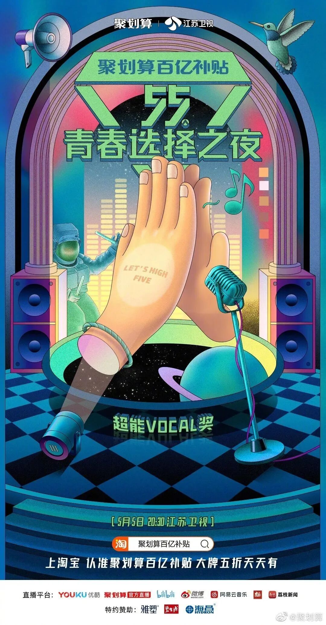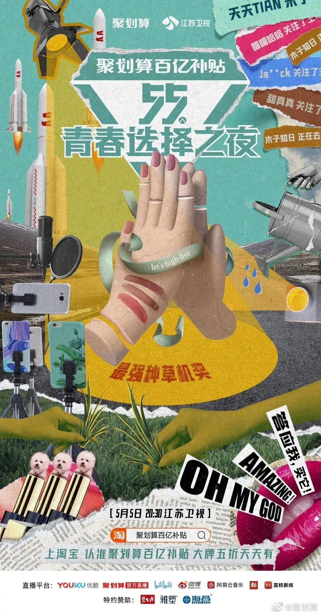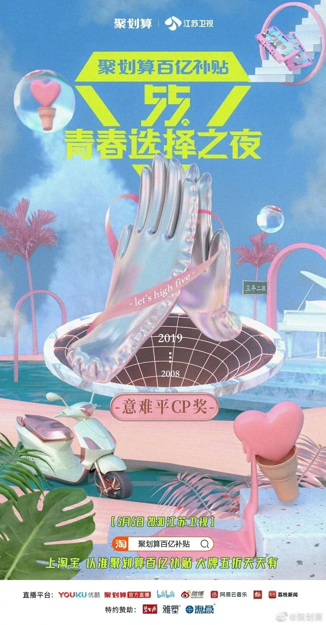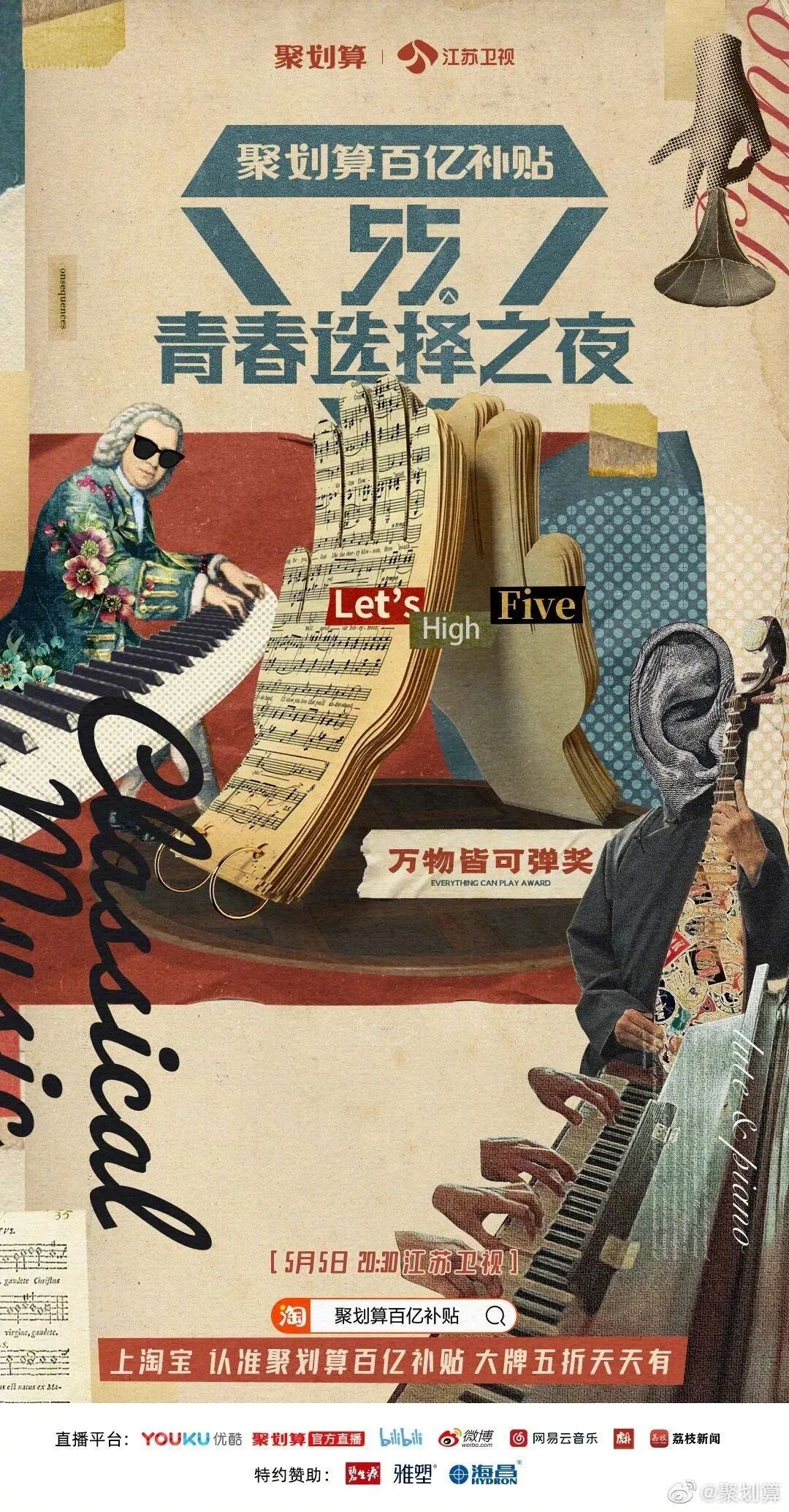 而今年5月5日,阿里旗下的聚划算也将联合江苏卫视,举办这样一场主打“买买买”的晚会——“55青春选择之夜”。从名字就可以看出,聚划算在试图打造一个专属于年轻人的狂欢盛会。