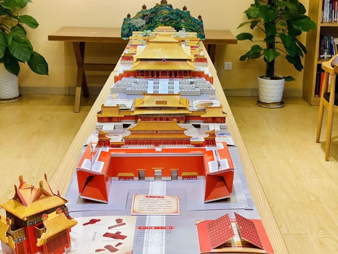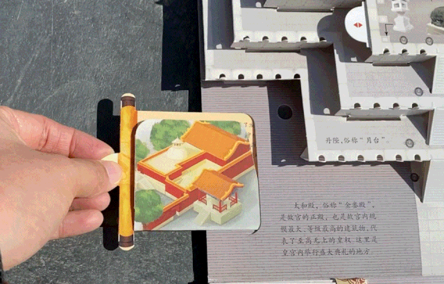 这本《打开故宫》立体书可不简单,12开超大尺寸,完全展开后长达3.2米,将紫禁城中巍峨的皇家宫殿完整复刻到了书中。