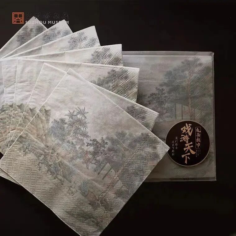 苏州博物馆还联合网易旗舰游戏IP「天下」,推出了吴王夫差剑雨伞、杜邦纸帆布包、古风餐巾纸三款产品,将历史文物玩出了新鲜感。