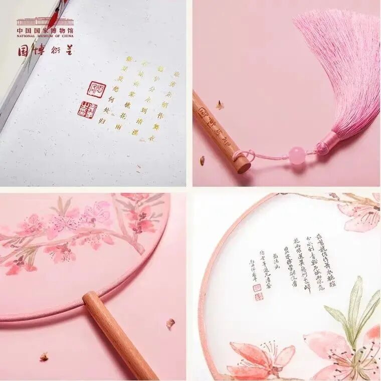 团扇分为提诗款和留白款,一浓一淡,手柄尾部的流苏点缀,则让团扇多了一份承启千年的浪漫之美。