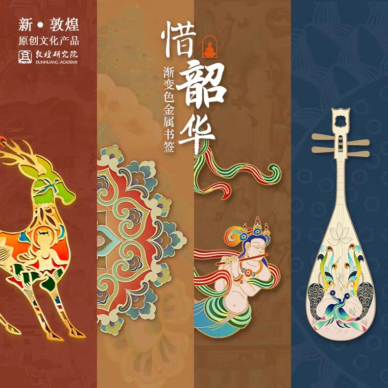 书签选取了敦煌壁画中的经典图案为设计元素,纹样丰富,繁复而不杂乱,饱含文化意蕴。颜值超高,有木有?