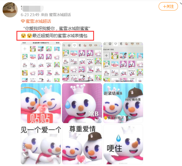 王思聪版、新闻联播版、冰冰版等......刷都刷不过来了。各路网友都来PK模仿翻唱,让我第一次get到了这个duangduangduang的音效精髓。除了洗脑神曲,网友们连表情包也不放过,开始加入恶搞雪王表情包的队伍。有人最近超爱用蜜雪冰城表情包,别问为什么,问了就陷进去了。假如你想让对象给你唱“蜜雪冰城甜蜜蜜”,记得把甜蜜表情包用起来。