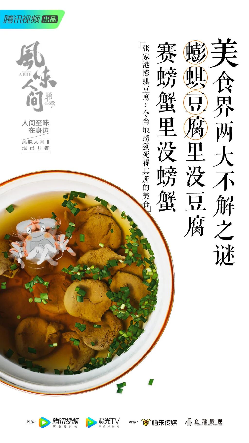 自2012年《舌尖上的中国》上映以来,导演陈晓卿已成中国美食纪录片殿堂级的炫目名片,被网友称为“统一饭圈”的男人。2018 年,被誉为最下饭的国产美食纪录片《风味人间》横空出世,这是“舌尖”总导演陈晓卿离开央视之后推出的另一爆款“风味”IP。相比《舌尖》来说,《风味人间》立意更加深远,在全球视野里审视中国美食的独特性。一经开播便引起人们纷纷议论。时隔一年半后,《风味人间》2又回来了!依然由陈晓卿导演,李力宏配音。还是熟悉的配方,熟悉的味道,对广大吃货来说简直大饱眼福。目前只播了两集,豆瓣评分高达9.4。在这档节目里,不仅有让人垂涎欲滴的美食,还有超级下饭的文案。特别是在第二集「螃蟹横行记」播出后,文案被网友封神,#风味人间螃蟹#和#风味人间文案#双话题纷纷登上热搜。