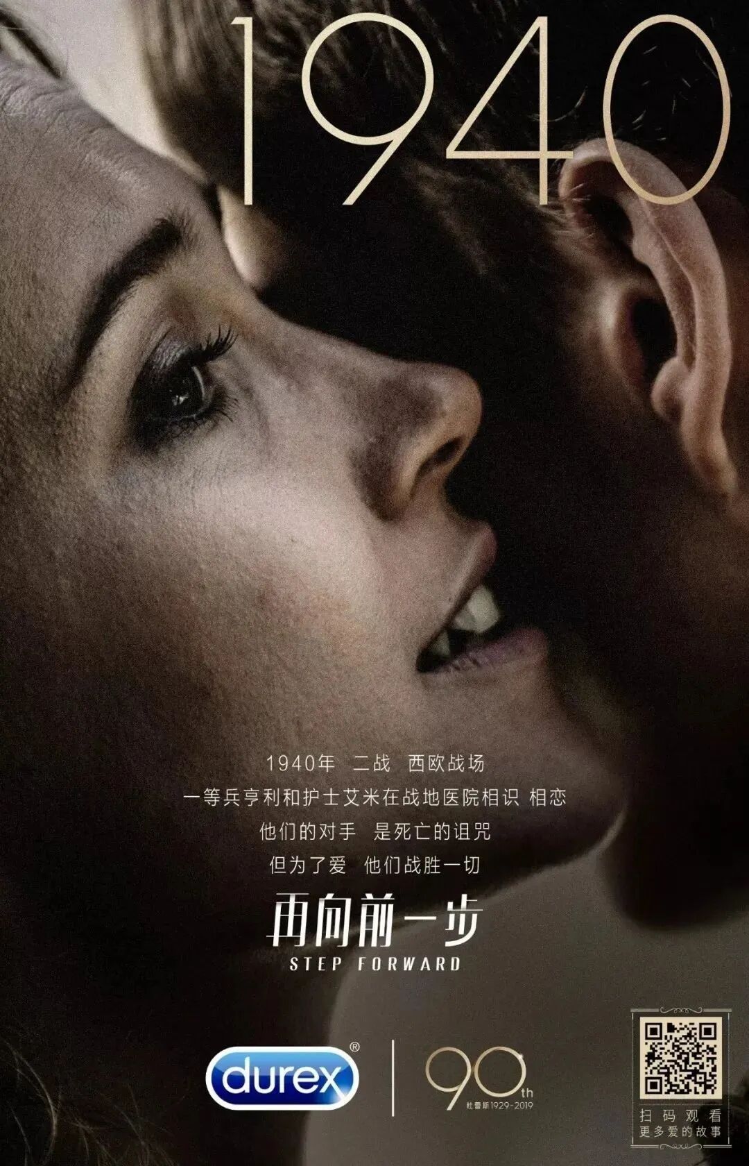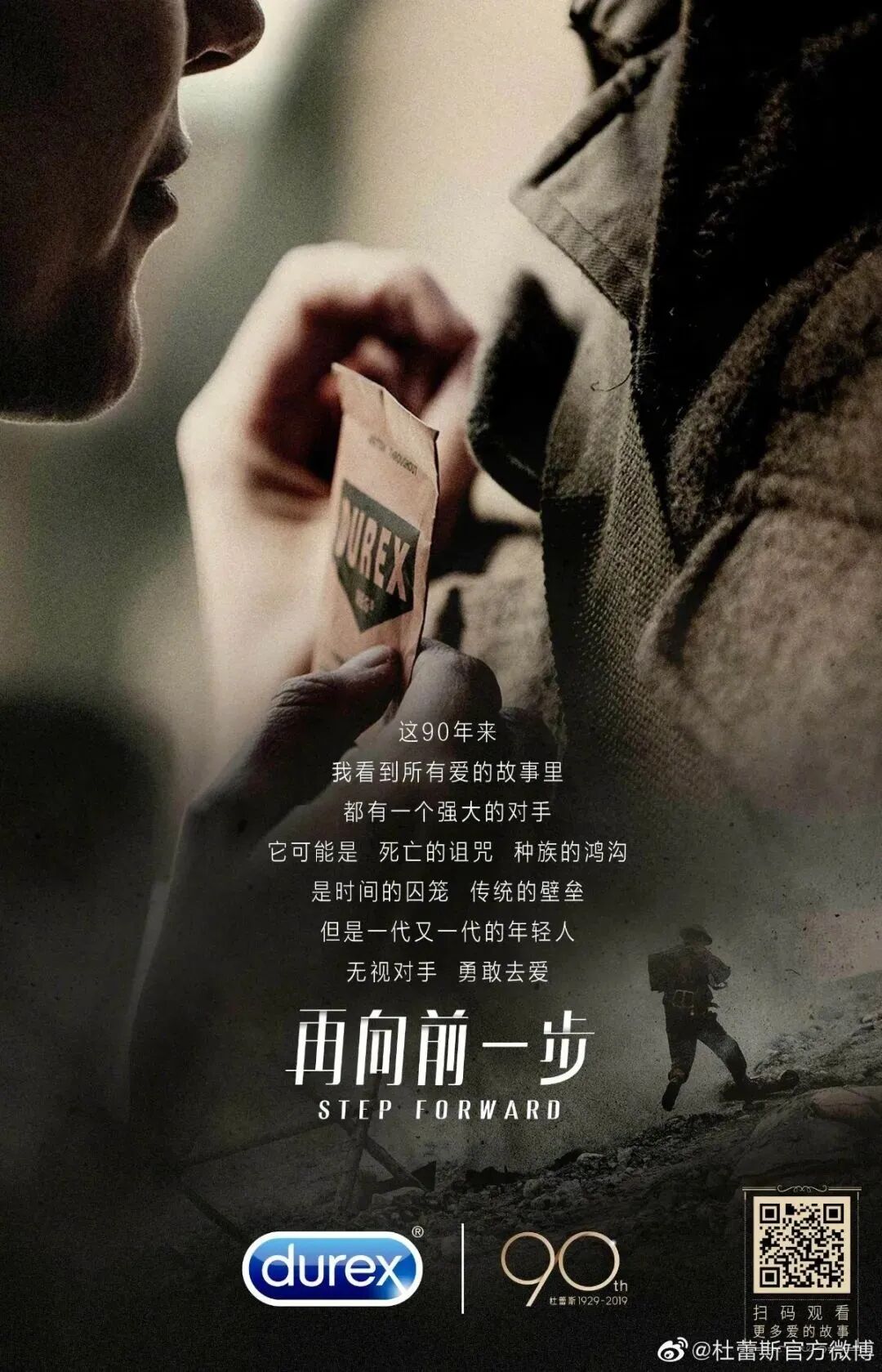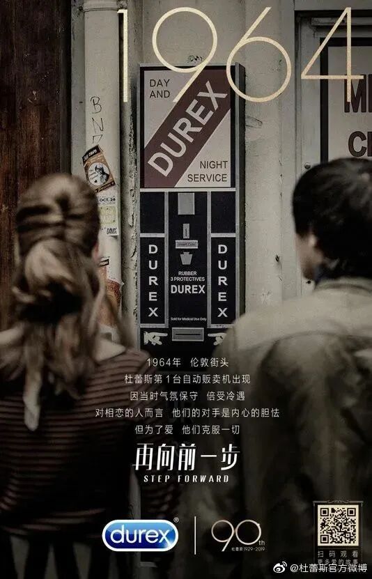 杜蕾斯90周年时,发布了一支很燃的广告片。通过四个不同的时代,讲述了品牌90年来的发展历程。