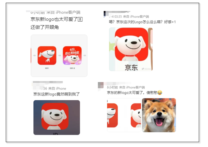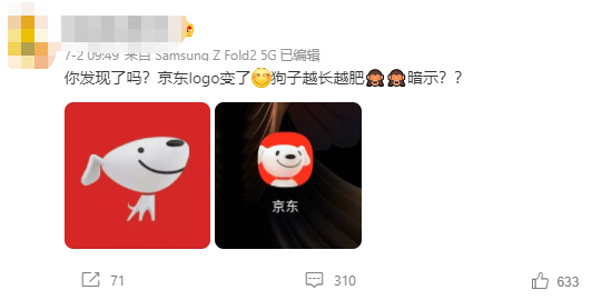 最近有一个类似的问题,让网友也很头疼,网友们很怕听到品牌问:“亲,我们的logo刚刚升级,快来看看哪里不一样。”淘宝的新logo采用原来的橙色底+白色文字的设计,只是对字体做了调整,把笔画变得更细弯,变得更加轻盈。如果没有人提醒,很多消费者根本注意不到。而小米则请了国际设计师原研哉设计了一个新logo。网友看到成稿后都替雷军着急,纷纷@雷总提醒他别上当。原来大师收了小米200万之后,改了原logo外框的几个线条,把棱角磨平,其他没有更改。连看了两次logo升级之后,网友忍不住吐槽:“就这?改了个寂寞。”虽然从营销的角度,它们不失为两个成功的话题事件。但是从讲段子的角度来看,如果同一个梗连用三次,受众就会脱敏,再好笑的梗也变得不好笑了。近期,京东通过官方社交媒体账号,发布了新logo升级的消息。在配图中,广大网友亲眼得见升级后的京东小JOY的新形象。与此同时,京东APP的用户在开屏页面看到了一个不一样的京东小JOY。原来四条腿的小JOY,现在变成像人一样用两条腿走路。另外,小JOY还从傲娇的小公举,变成爱笑的大宝贝。这一次,网友们非常满意:都来看看,这才叫logo升级嘛~
