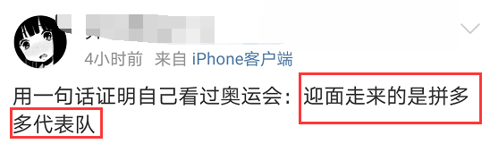 翻了翻网上的评论,发现不少网友跟我一样,对于拼多多的现身感到困惑。有人直接献上一道奥运抢答题。