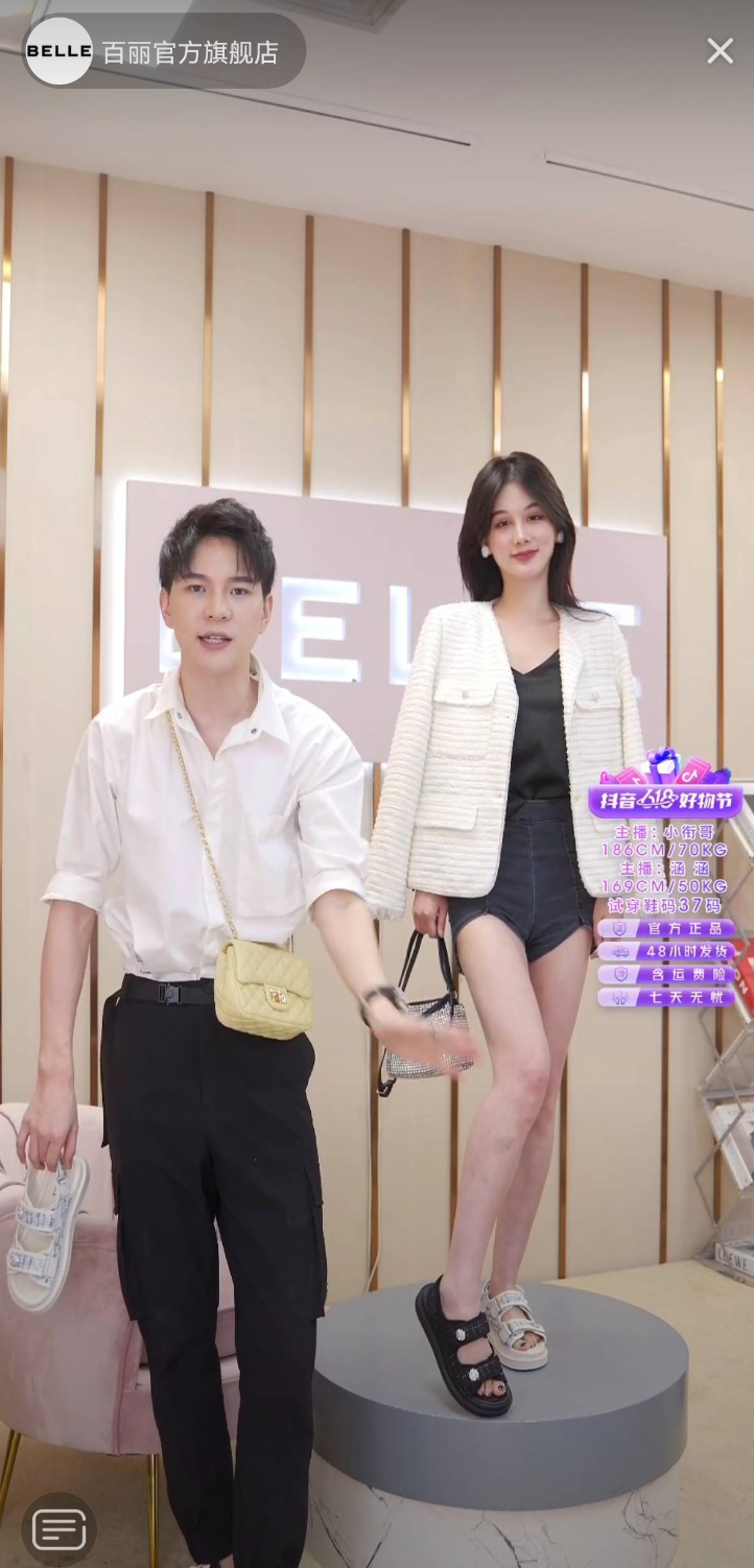 其中,与知名女鞋品牌百丽的合作,值得一提。双方结缘于今年3月,百丽新号自播仅20天,单场GMV便突破千万;在今年5月品牌自播大服饰行业净销售排行榜中,百丽排名第一,同时,该月GMV突破八千万。