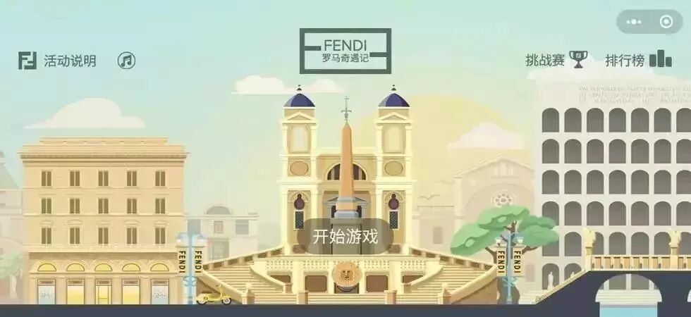 FENDI贴合FENDI 2019年的罗马高定秀,推出了《FENDI罗马奇遇记》游戏。在游戏中,随处可见FF系列标志等经典品牌元素。游戏的场景还植入了意大利文化宫、FENDI广场、FENDI旗舰店等代表地标,向玩家展现FENDI和罗马之间的紧密联系,感受罗马风情。
