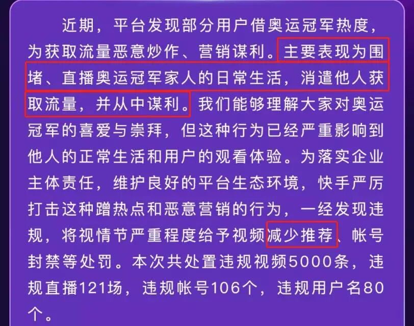 是因为有观众吗?或许,很少有人会主动想去窥探私人生活。可是,在大数据时代,各种算法铺天盖地。当你在网络搜索“全红婵”,下一个推荐的视频,有可能就是她家门口的菠萝蜜树。抖音和快手发布公告,是否意味着,未来网络视频将更多地倾向于保护明星名人隐私,以弘扬积极正向的内容为主,少一些博眼球蹭热度的“骚操作”。在流量浮躁的今天,让全红婵的奶奶睡个好觉,让全红婵的冠军之路走得更长更远,才是利家利国的正道。首席营销官原创,转载请联系原作者