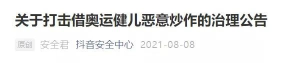 抖音:针对借奥运健儿营销、蹭奥运健儿热度的违规行为,已经下架违规视频 3287 条,处罚违规直播间 106 个,处罚违规帐号 92 个,其中永久封禁违规帐号 32 个。