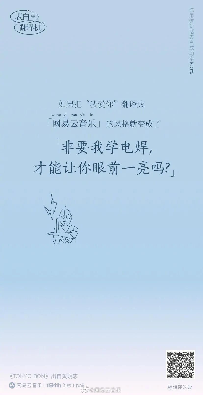 为了提高广大网友的表白几率,一向喜欢搞事情的网易云音乐,这次又上线了一个七夕表白翻译机,将「我爱你」翻译成不同风格的情话。
