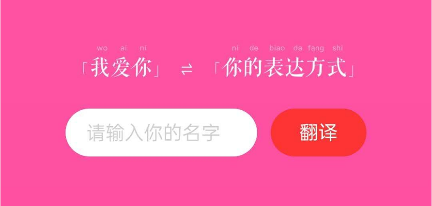 输入名字点击“翻译”按钮,表白翻译机将根据用户输入的名称生成一张色调甜美、号称表白成功率100%的表白图。