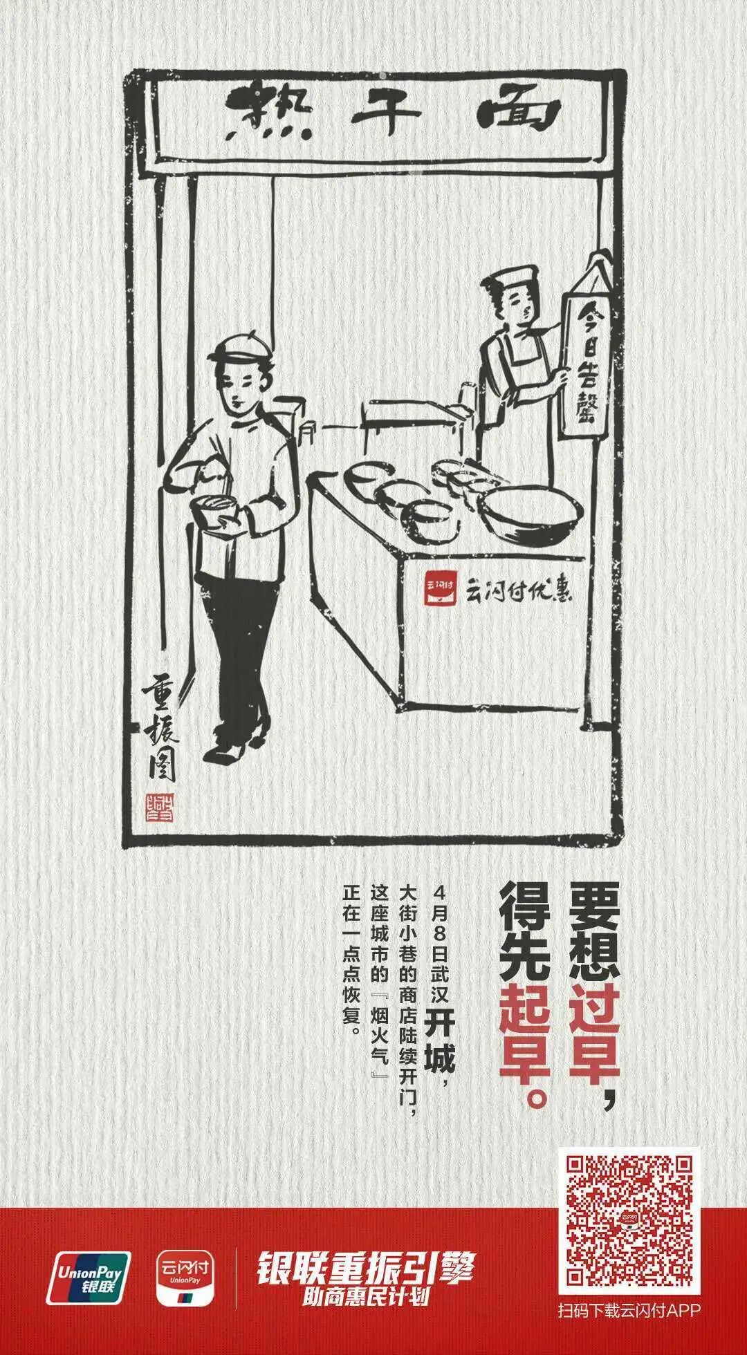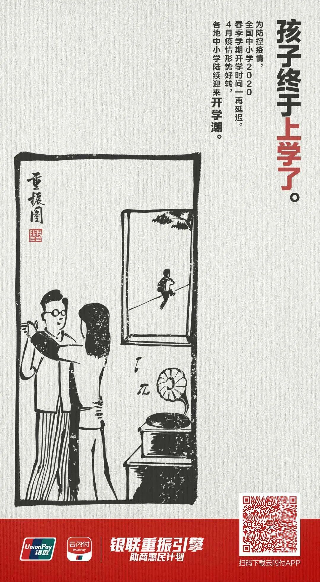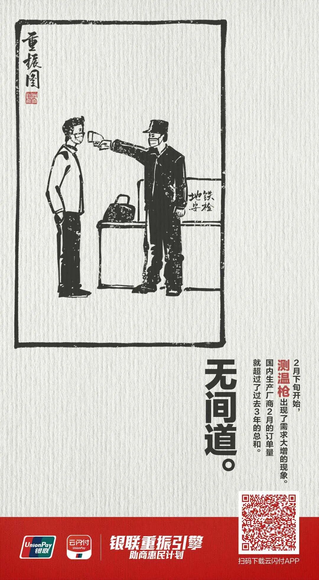 除了发布品牌影片,为宣传该项计划,中国银联还推出现实题材主题漫画「重振图」,用 36 幅民生质感的画作,记录下经济复苏的 36 个剪影。