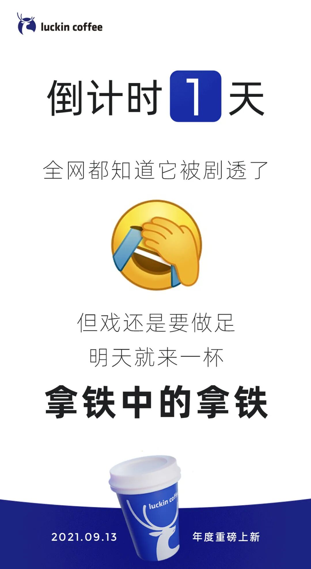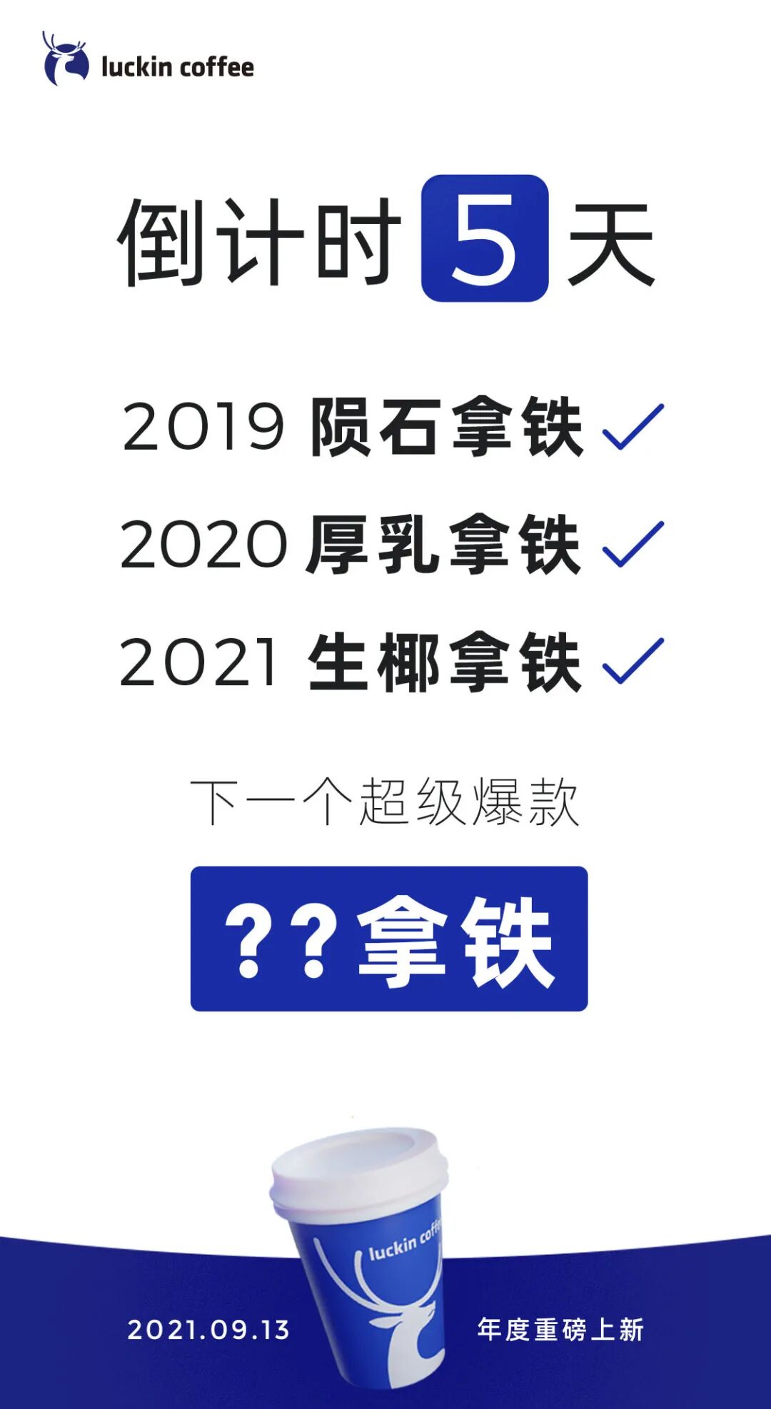 今年9月,瑞幸又开发了新品,且提前5天就发了悬念海报,引得大家纷纷猜测: