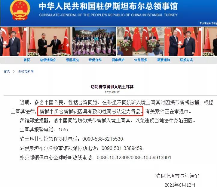 在一些国家,对槟榔有着严格的管控。比如,槟榔在土耳其被认定为“毒品”。如果携带入境,很可能会违反当地法律,身陷囹圄。