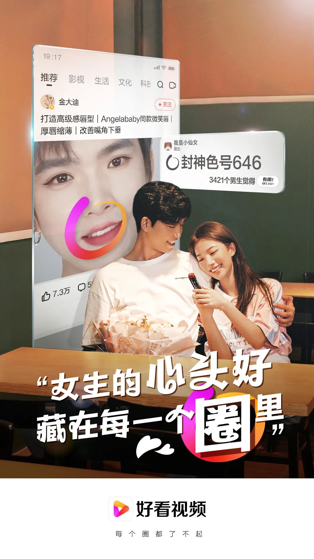 一支广告片的知识密集程度令人目不暇接。想必大家也都注意到了,广告片中那些知识的分享,其实都是基于好看视频推出的“圈一下”新功能。这个功能很适合年轻人,尤其是大学生和白领,涵盖了他们生活的方方面面,从美妆到考研,从刷剧到省钱…可以说包罗万象。