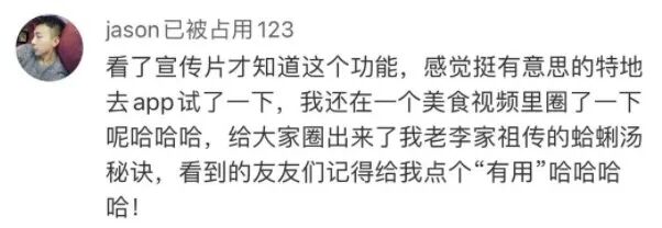 如果说广告短片只是让用户知道好看视频的“圈一下”功能,那么这批用户和粉丝自发的留言则不仅在网络上引发了一波“圈一下”功能的话题热度,更引发了网友对这一功能的体验、安利热潮。