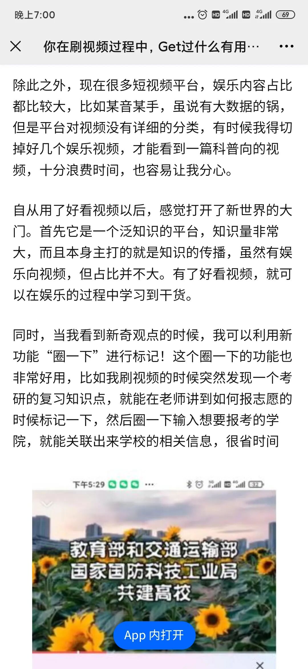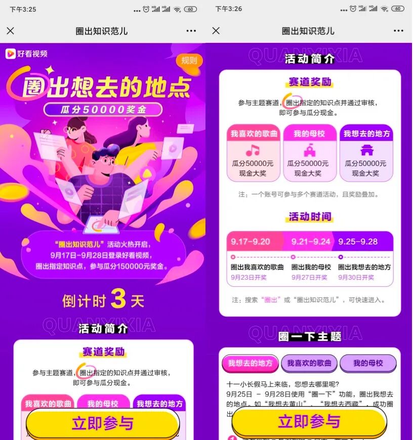 值得一提的是,在端外引发热议之外,好看视频还针对大学生在端内举办了“圈出你的知识范儿”活动,为用户在APP内体验 “圈一下”提供了落脚点,参与就有机会瓜分15w现金,吸引了不少大学生热情参与。从端外到端内,形成了一个用户传播体验链路的闭环。