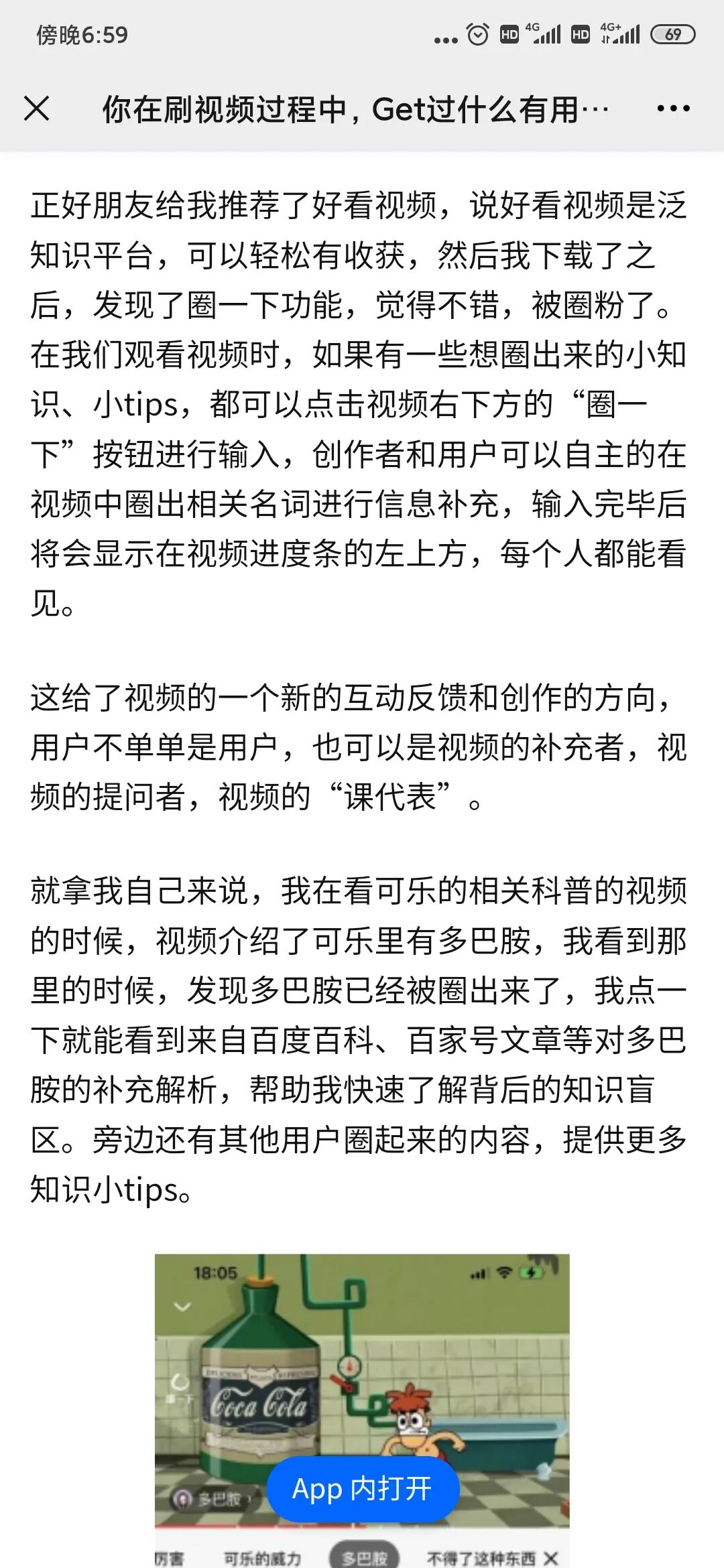 据我了解,这应该是第一家推出这种玩法的视频平台。作为好看视频打造的一项视频特色交互功能,“圈一下”确实有意思。通过一个小小的功能创新既让知识、态度、话题的分享变得有有趣好玩,用户乐于接受;同时对分享者来说这种交互本身也成为一枚社交货币,激发大家对知识的分享欲,增加知识的传播度。