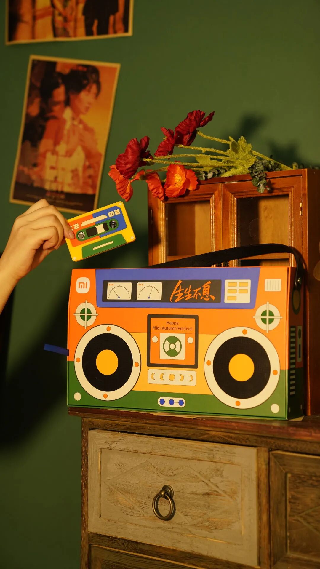 除了月饼的创意,快手还推出一套快手的中秋周边,包括“月球邮递局”的主题包包、床上四件套,以及咖啡渣循环利用后制造的咖啡杯。贴进生活的周边设计,带出了品牌温暖陪伴用户的人文关怀。说起月饼与健康,我们总会觉得是一个矛盾的存在,再看这届年轻人,天天喊着要养生,其实早已病得不轻。这不新浪今年就创新性地走起了养生路线,推出了“月球冲浪”的主题月饼,涵盖红糖姜茶,秋梨枇杷膏,长白山参片蜜,豆沙、椰蓉、草莓、五仁四种口味的月饼。再看整个包装设计,采取了高级黑的包装设计风格,辅以月球、太空人等太空元素,与“月球冲浪”四个字高度呼应。值得注意的是,新浪还在每个小月饼包装上,印了趣味的social文案,比如“多喝热水”、“有一说一”、“大浪推新”等,还有潮流的朋克元素点缀,赋予中秋更多现代化的潮流内涵。新浪这回可谓把我们这届年轻人对于养生和黑话的喜好,拿捏得死死的,把月饼营销真正做进年轻人的心里,瞬间拉近了品牌与年轻人之间的距离。别以为月饼只能吃,在小红书的设计师眼里,月饼礼盒还能拿来玩一下。MOON ROUND本就是表达了中秋月圆的内涵,有意思的是,小红书还皮了一把,在外包装上搬上圆圈的符号,让这个礼盒瞬间看起来更“圆”了。围绕小红书【MOON ROUND/碰一下】的传播主题,小红书为礼盒融入了不少社交的符号,玩起了“碰”梗,推出了“碰个面”、“碰个杯”、“碰碰棋”的一系列的玩物,这其实分别对应植物月饼,水果棒棒茶和碰碰棋等礼物。试想一下在月圆之日,将两个盒拖简单的拼在一起,礼盒就能变身成碰碰棋游戏盘,一边赏月一边下棋,这不就是月圆人圆吗?透过小米今年的月饼营销,我们就会发现复古确实是个好东西。小米以复古收音机和复古磁带为创意灵感,记录了当下音乐爱好者对于磁带的热爱与另类表达。在颜色处理上,小米运用了黄色、蓝色、绿色、黑色、橙色等高饱和度的颜色,并进行了撞色的创意处理,看起来毫无违和感,小米这次用色确实很大胆。小米设计上还藏着这么一个细节,针对不同的包装盒,融入了小米的产品符号,比如小米(MI)AI音箱、扫地机器人、小米手机、Mi Band等图案。小米也从另一个层面,表现了小米产品一直用心陪伴用户的一面。