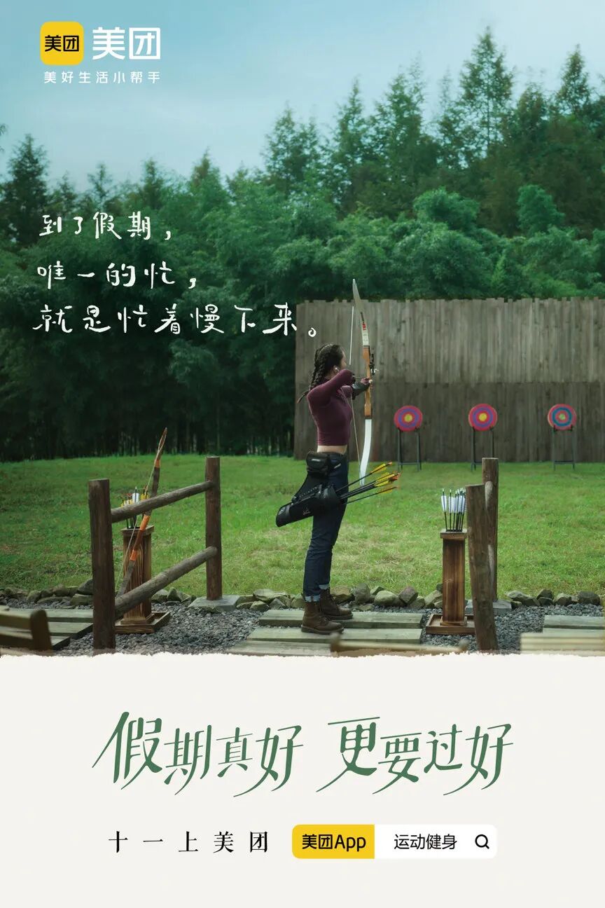 从品牌层面来看,这5个悠闲的小故事其实正对应了美团平台的「聚会玩乐」「酒店/民宿」「外卖」「单车」「运动健身」5个板块。除了短片风格治愈、内容诙谐之外,我很喜欢里面的文案。在这个高度繁忙的社会系统中,我们每天忙着赶路、忙着工作,却很少把生活留给自己,有人说“急着赶路的人是没有生活的”,曾几何时,我们工作是为了好好生活,如今却因为工作而忘记了生活。《蚁族的奋斗》里有一句经典的台词“人走的太快得停停,要不心跟灵魂都不跟上了”。道出无数奔波者的心声。生活不断向前,我们都是赶路人,当我们忙着你追我赶,但却容易忽略了一路的风景。不禁让我想起了电影《肖申克的救赎》里那句经典台词“要么忙于生存,要么赶着去死”。马德在《允许自己虚度时光》里曾说:“生命之于这个世界,最幸福的存在,不是喧嚣和繁盛,而是简单和自由。”我们每天都在拼命地工作,像一台被上了发条的机器一样,似乎永远停不下来。早出晚归,总是行色匆匆,永远有挤不完的公交地铁,永远有交不完的房租,做不完的工作,熬不完的夜......就像走向熙攘的人群中,即便你不往前走,也会有人推着你往前走。试想一下,你有多长时间没有陪父母好好说说话了?你有多长时间没有静下心来,好好看一本书了?你有多长时间没有跟好朋友促膝长谈了?让生活慢下来,反而成为了许多人的一种奢求,让人无比渴望能好好享受慢时光。美团正是洞察到了无数上班族想要「慢下来」的心理,于是推出这支十分治愈的假期短片,主张到了假期,就想把以前赶路的时间,慢慢,慢慢地还回来。今年7月份,美团进行了全新的品牌升级,定位为「美好生活小帮手」。还发布了一组品牌海报,将旗下业务与各个场景相绑定。从这个定位可以看出,美团扮演的,是人们日常生活中一个小助手的角色,解决人们吃喝玩乐出行等各种问题。全新的定位在彰显品牌温度的同时,也体现出美团更全面的业务范围和对人们生活不可悉数的帮助。从最初的“吃喝玩乐,尽在美团”,到去年底的“美团App,干啥都省钱”,再到如今的“美团,美好生活小帮手”,美团升级slogan的背后,是美团不断对外告知「品牌力」的一个信号。尤其是在十一长假这个时间节点,人们需要用美团订酒店、制定行程 、找附近的美食、点买卖、买各种生鲜水果等功能的频率增加。因此美团迫切需要在国庆长假到来之际,推出一支这样的广告片,来告知美团是人们「美好假期生活的小帮手」这一讯息。因此我们可以看到,在这支广告中,美团还调皮地在原来的slogan「美好生活小帮手」中,特意用手写字加上了「假期」两字,变成了「美好假期生活小帮手」。这样的一个小改动让受众更能直观感受到在假期期间,美团能真真切切地帮助人们解决假期遇到的各方面问题,不断深化「美好生活小帮手」的 slogan。这样做的目的是,让用户对美团的功能有了更加「具象化」的理解,让你在假期有需求时,能够想起打开美团,搜一搜具体服务,解决刚需问题。有了这一波的尝试之后,或许美团之后还可以细分出更多具体的场景。譬如,它不仅可以是「假期」生活小帮手,还可以是「旅行」生活小帮手、「出差」生活小帮手、「聚会」生活小帮手、「团建」生活小帮手......