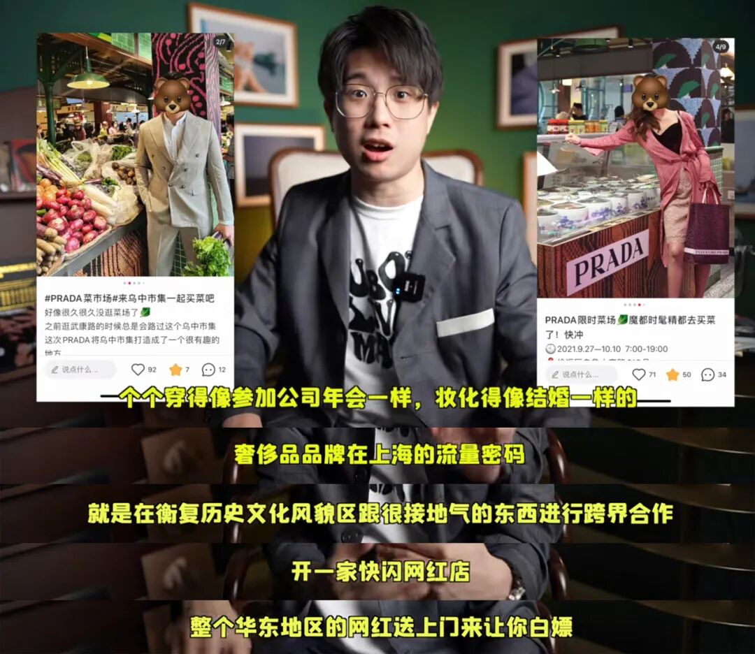 估计Prada自己也没想到,努力营销的生活烟火气,最后反而让网友气得冒“烟”,“火”大得很,这也怪有的网红把画风带偏了。