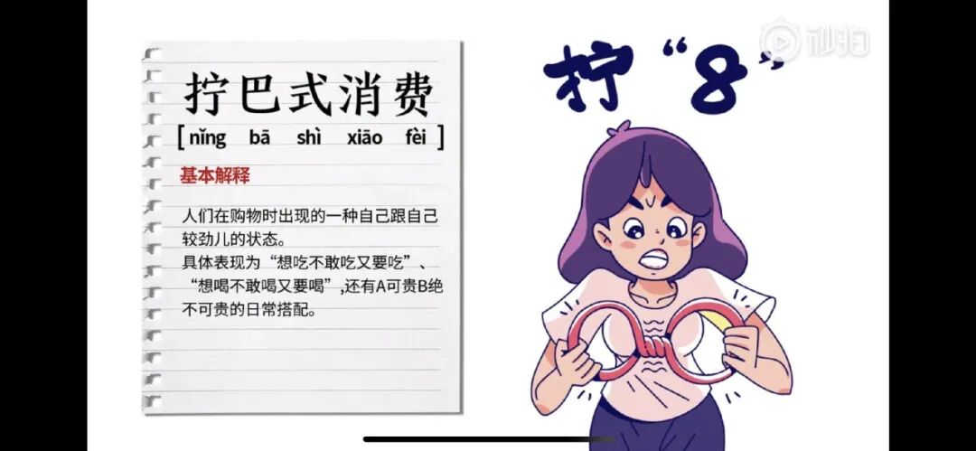 拧巴式消费,是指在购物时出现的一种自己跟自己较劲儿的状态,也指消费行为的不一致。