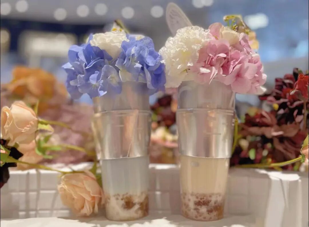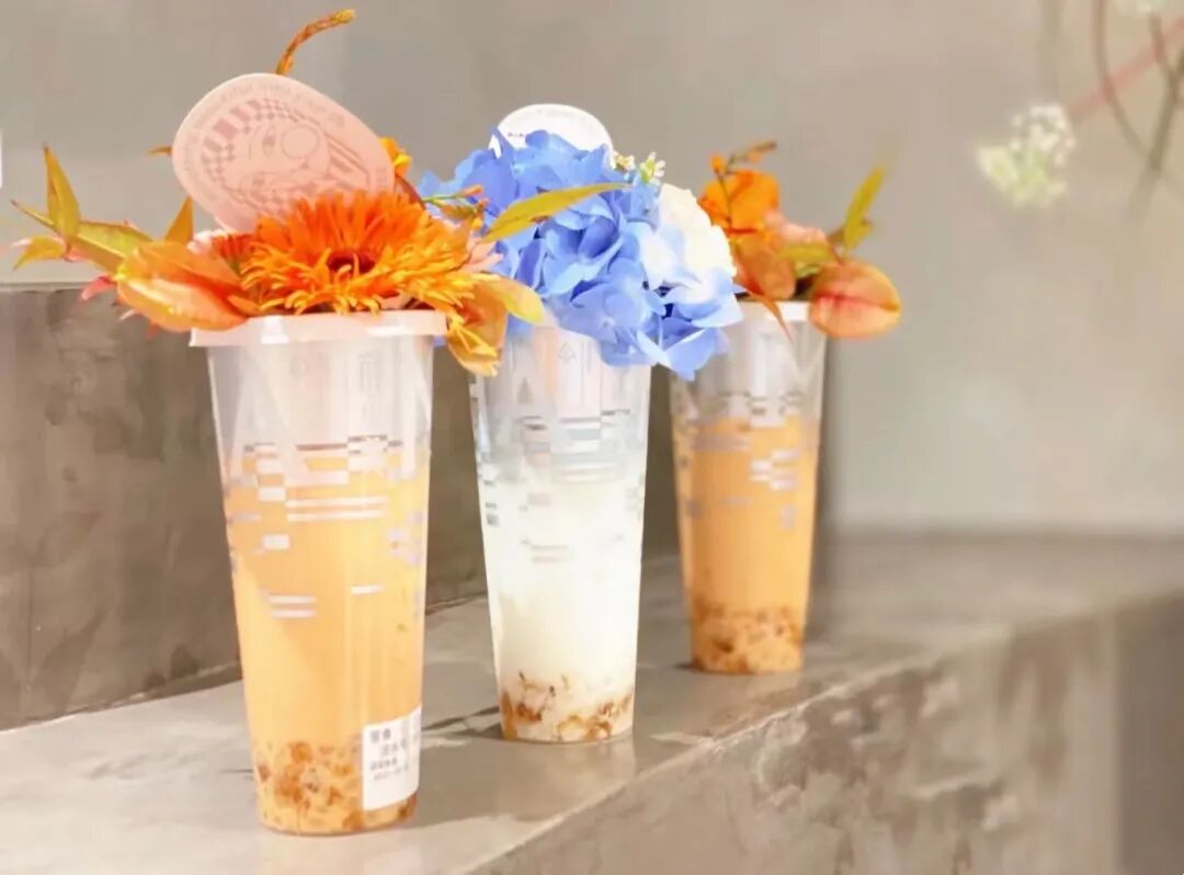 它的出圈产品是“鲜花奶茶”,颜值超高,一天最多能卖1200+杯,门店最高月营业额能做到70万+。